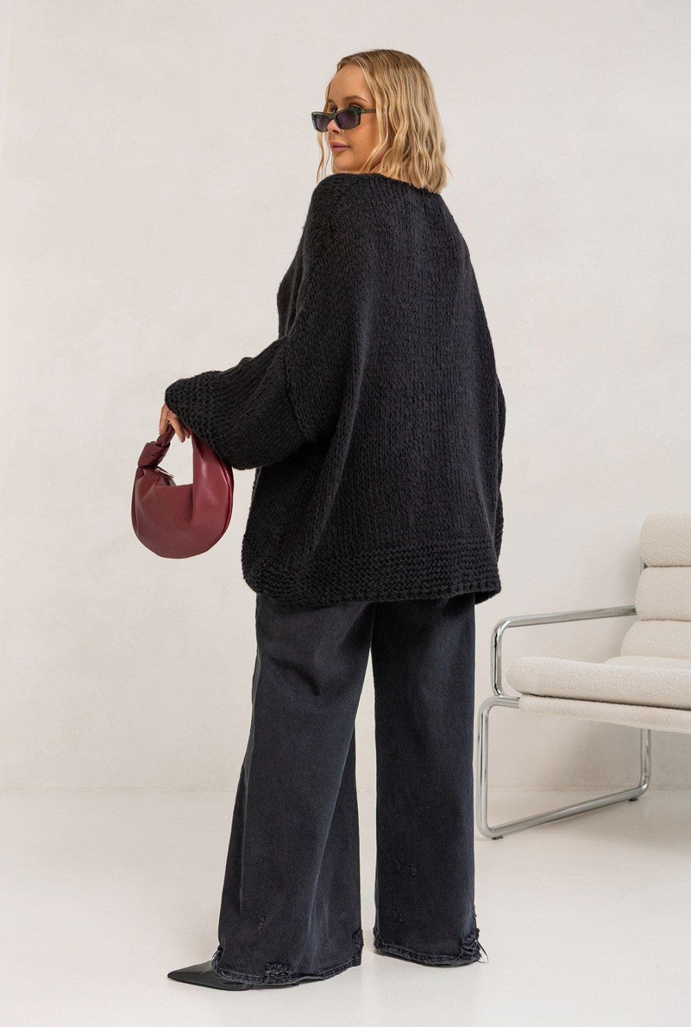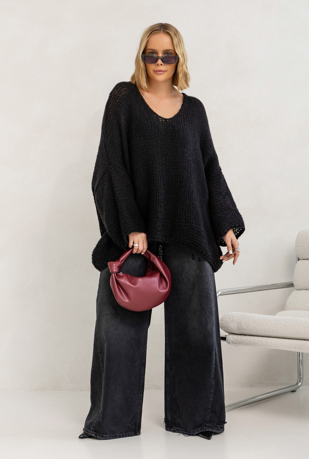 Miękki sweter o luźnym, oversizeowym kroju to doskonały wybór na chłodniejsze dni! Ten ponadczasowy model świetnie sprawdzi się w codziennych, wygodnych stylizacjach. Ma dekolt w serek i lekko skrócone rękawy.