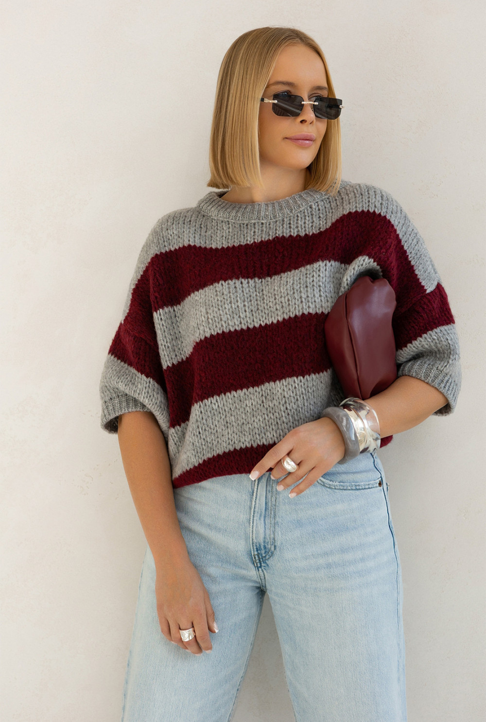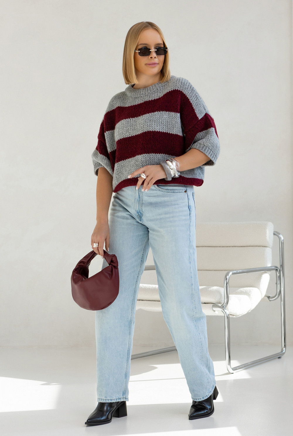 Krótki sweter w paski Gabriella Ciemny szary-burgund