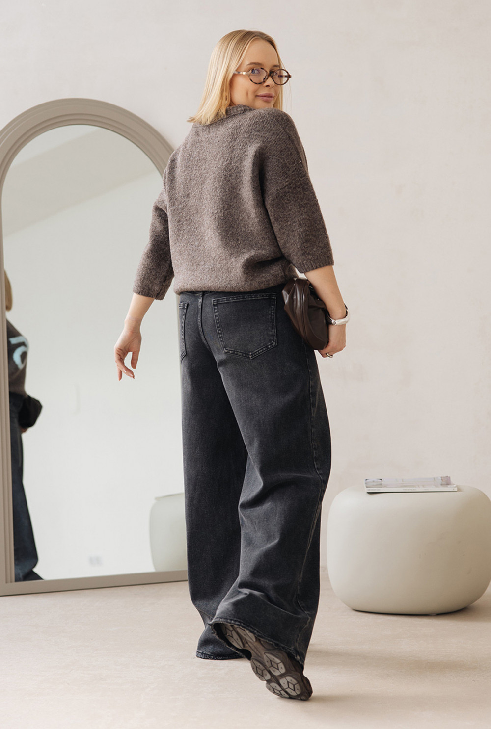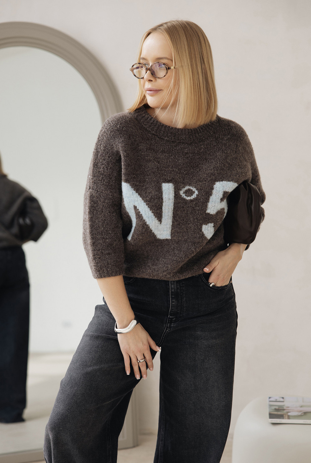 Sweter z napisem Noelle Ciemne Kakao-błękit