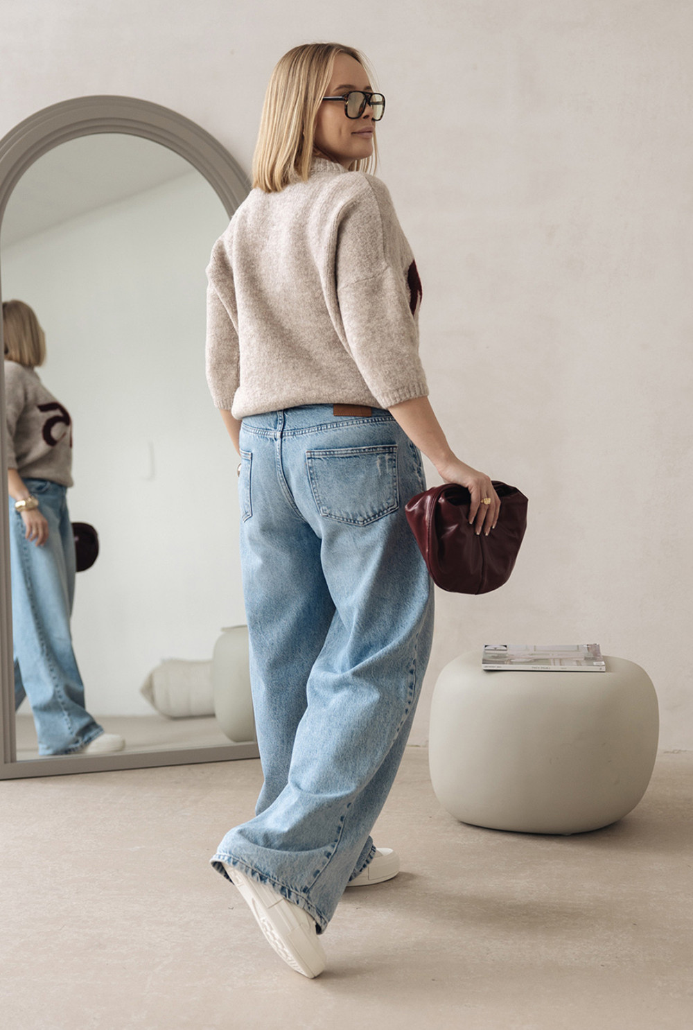 Sweter z napisem Noelle Beż-burgund