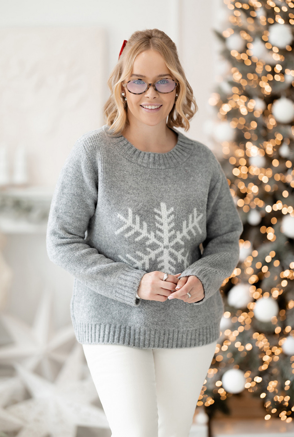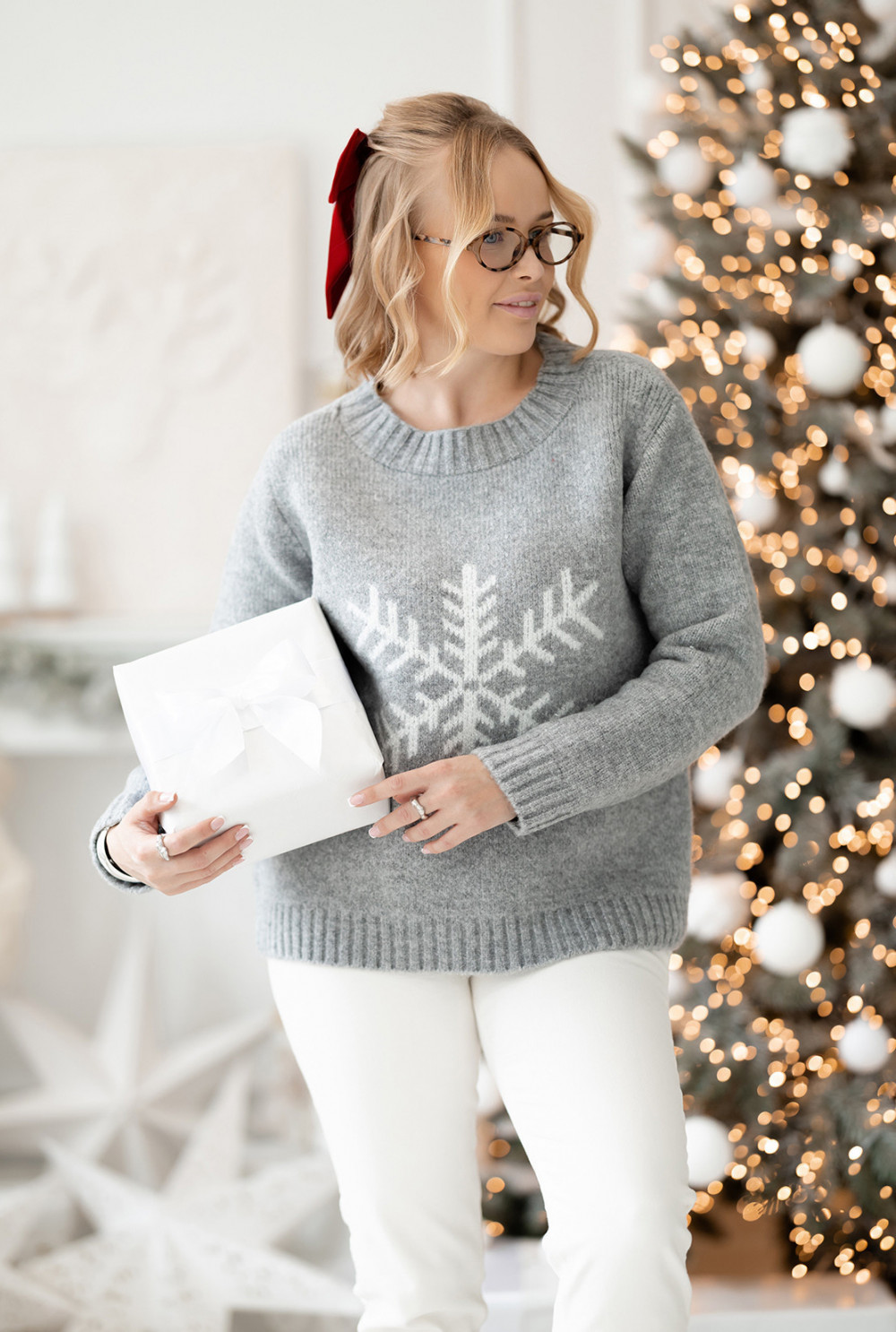 Świąteczny sweter ze śnieżynką Snowflake Ciemny Szary