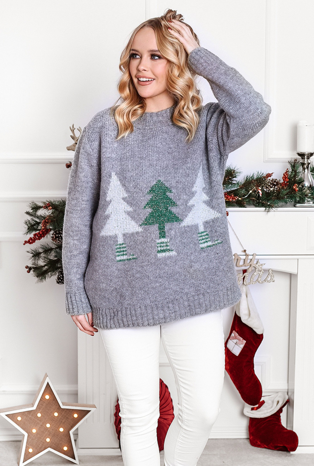 Świąteczny sweter z choinką Christmas tree Ciemny szary
