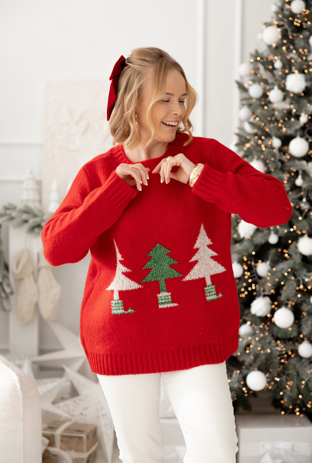 Świąteczny sweter z choinką Christmas tree Czerwony