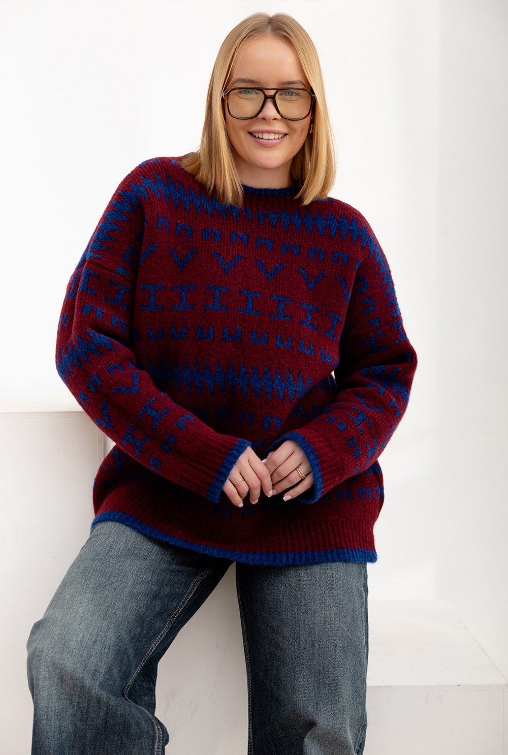 Sweter z geometrycznym wzorem to idealny wybór na chłodniejsze dni! Miękki, ciepły i niezwykle przyjemny w dotyku, wykonany z dbałością o każdy detal. Klasyczny fason z charakterystycznym, nordyckim motywem dodaje mu wyjątkowego stylu i ponadczasowego uroku. Model dostępny w wielu wariantach kolorystycznych.