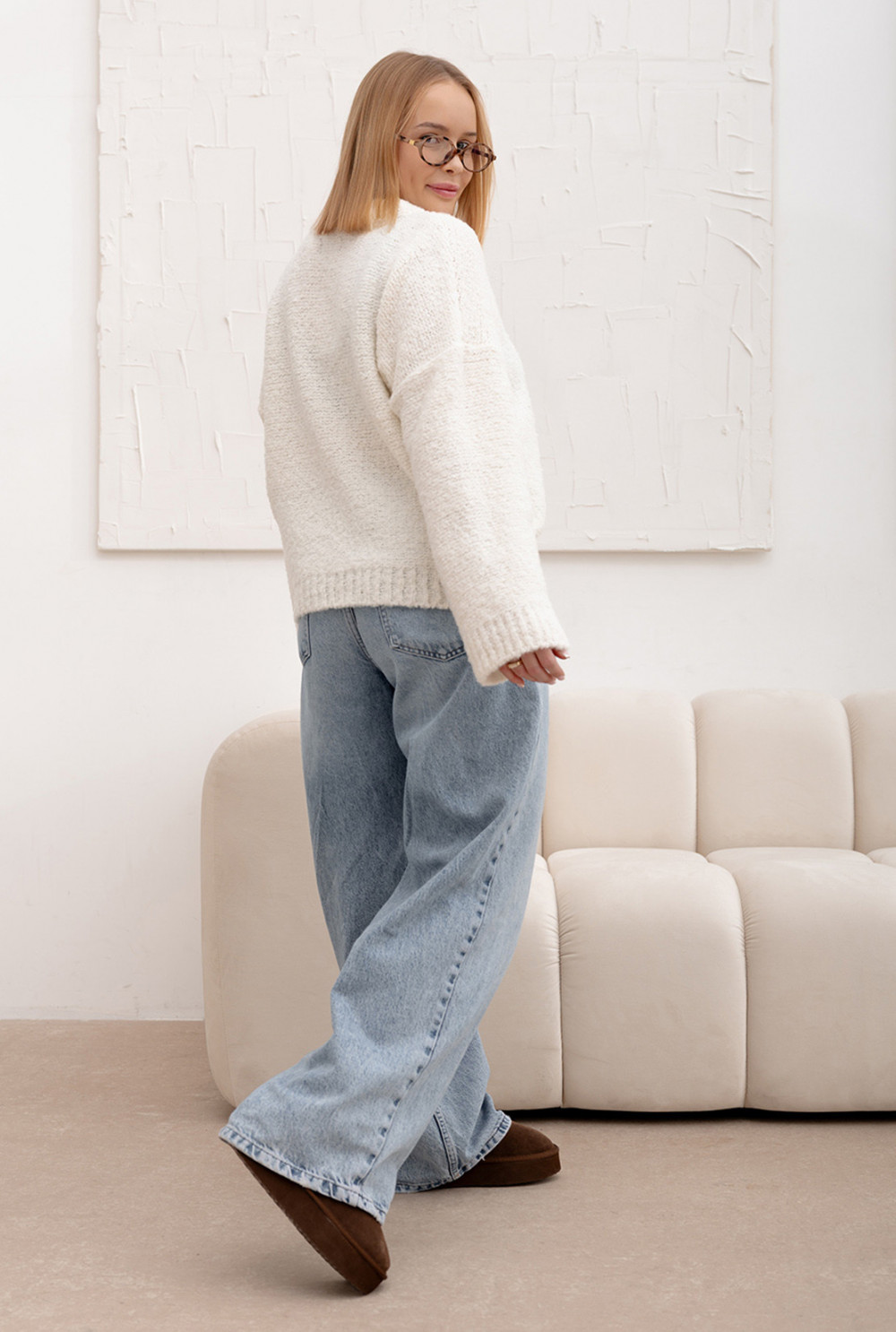 Klasyczny sweter to idealny wybór na chłodne dni! Miękki, ciepły i niezwykle przyjemny w dotyku, posiadający zaokrąglony dekolt. Prosty fason i naturalna kolorystyka dodają mu eleganckiej lekkości oraz codziennego komfortu. Dostępny w kilku kolorach.