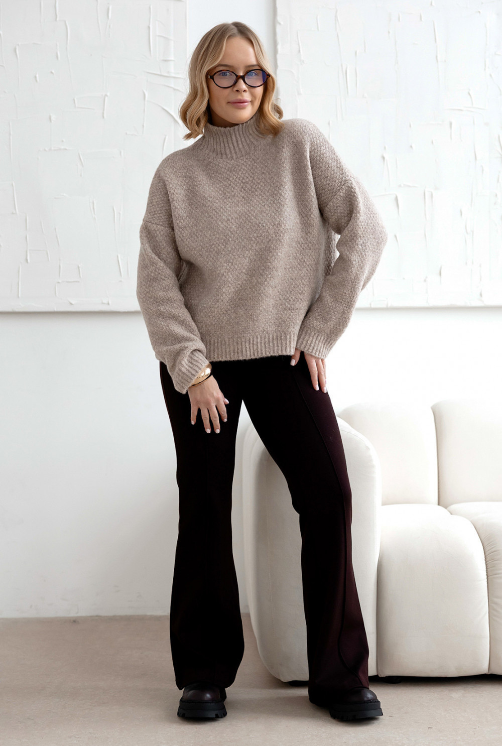 Miękki, ciepły sweter z golfem, idealny na chłodniejsze dni. Wykonany z dbałością o detale z wełna w składzie. Klasyczny, lekko oversizeowy krój dodaje mu nowoczesnego, a jednocześnie ponadczasowego charakteru. Dostępny w kilku wariantach kolorystycznych.