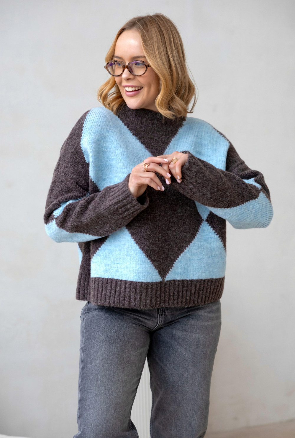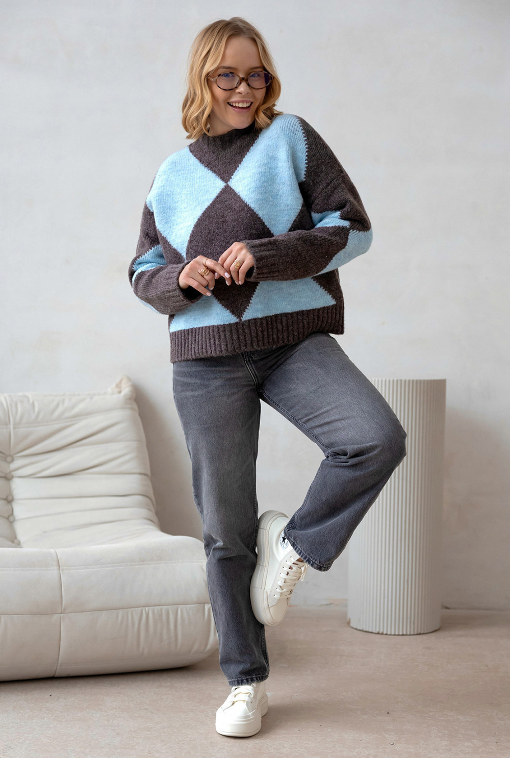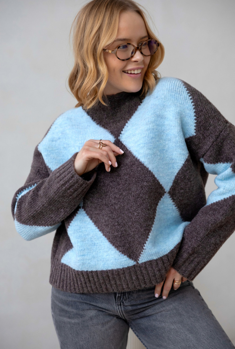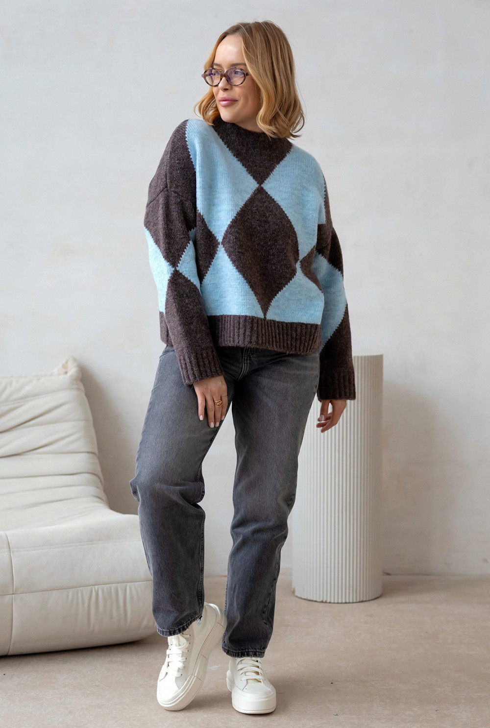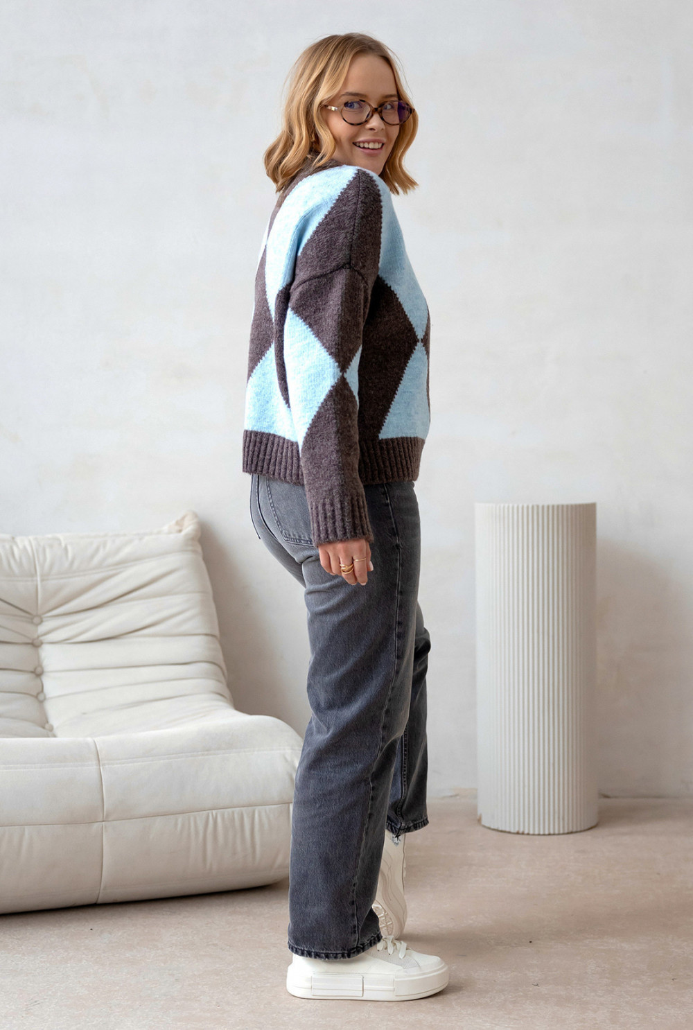 Sweter w romby Anastasia Ciemne kakao-błękit