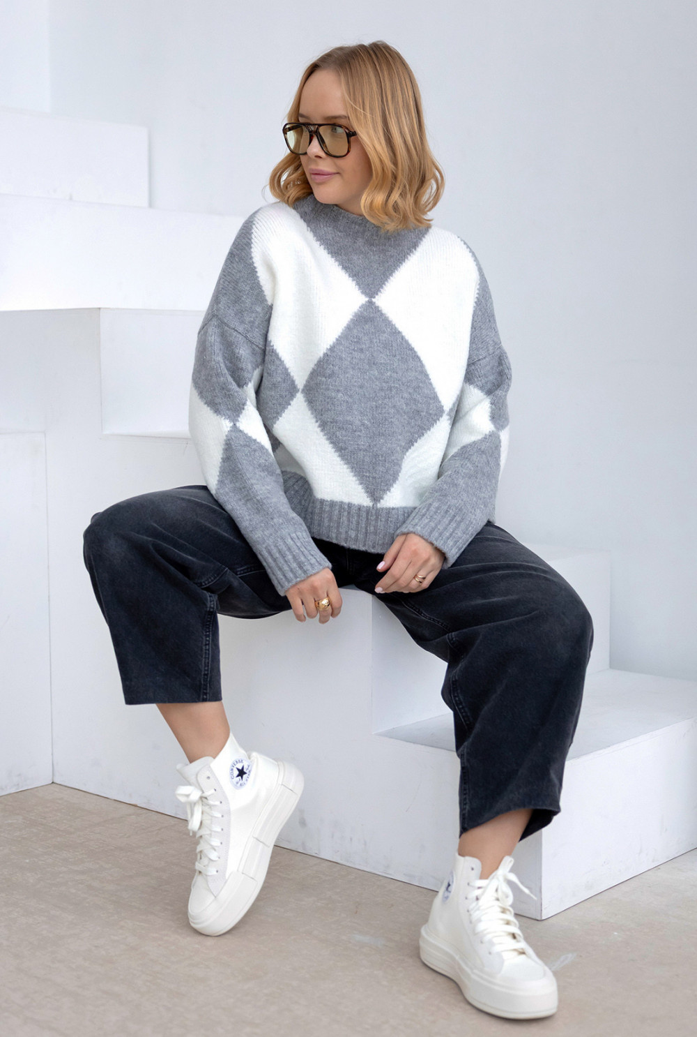 Sweter w romby Anastasia Ciemny szary-ecru