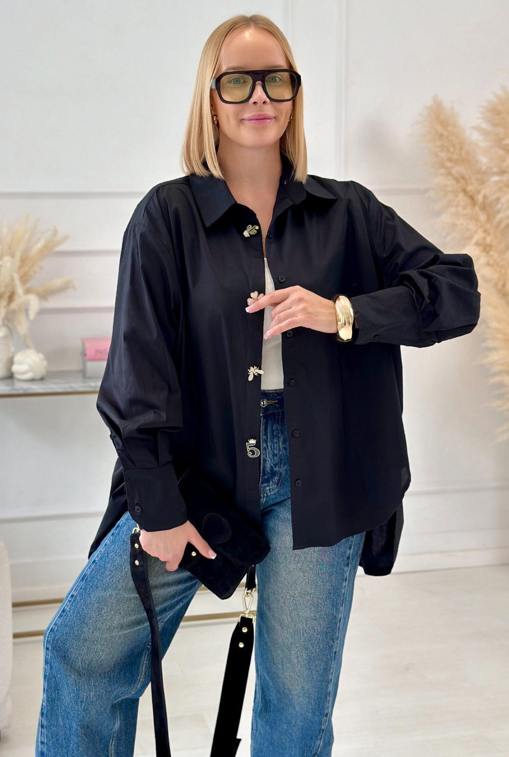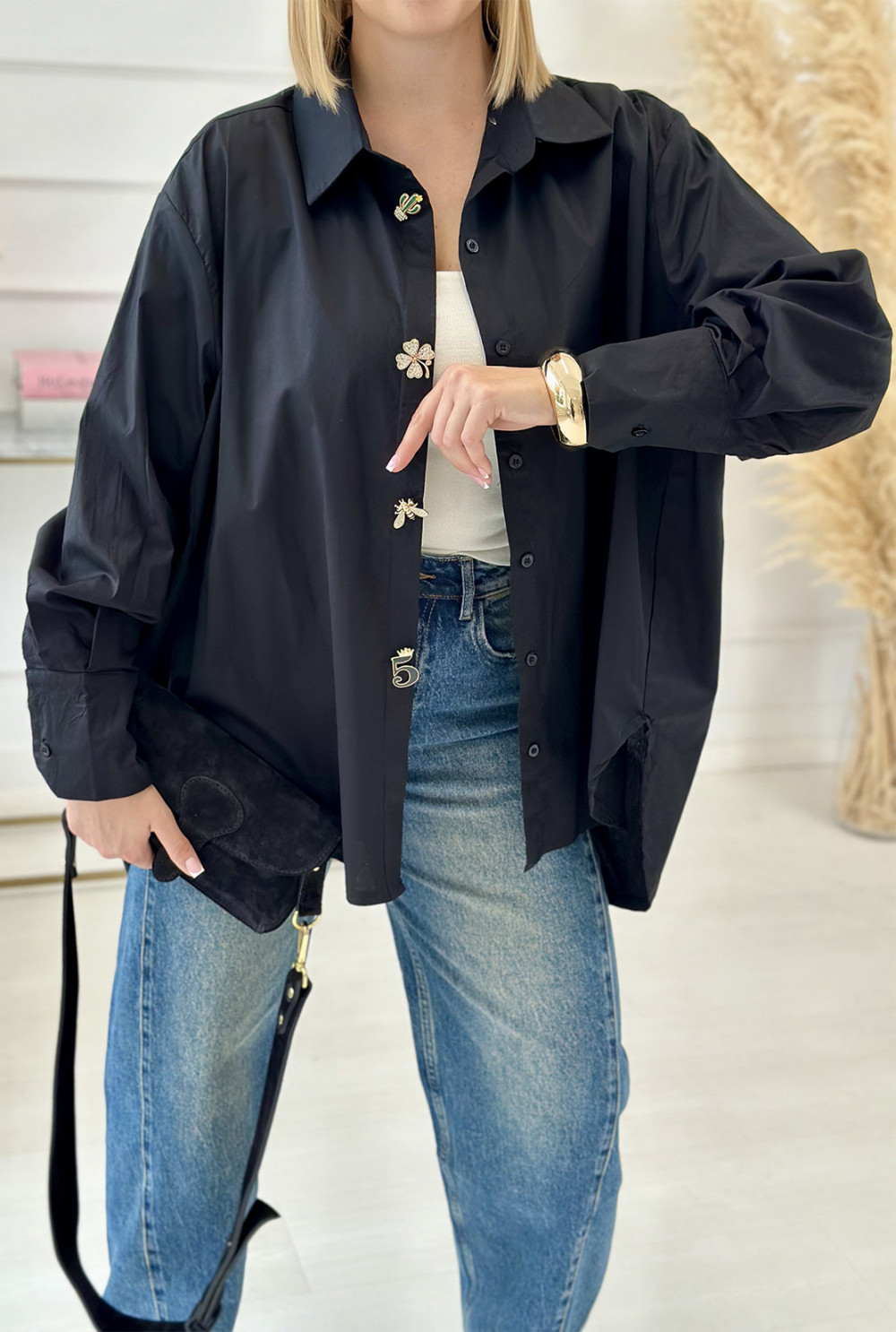Bawełniana koszula z ozdobnymi guzikami Francesca Czarny