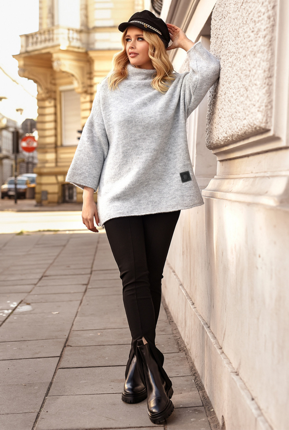 Tunika swetrowa z subtelnym golfem. Model posiada szerszy rękaw. Idealnie sprawdzi się na nadchodzący sezon.