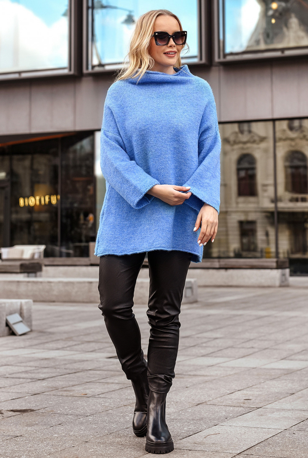 Tunika swetrowa z subtelnym golfem. Model posiada szerszy rękaw. Idealnie sprawdzi się na nadchodzący sezon.