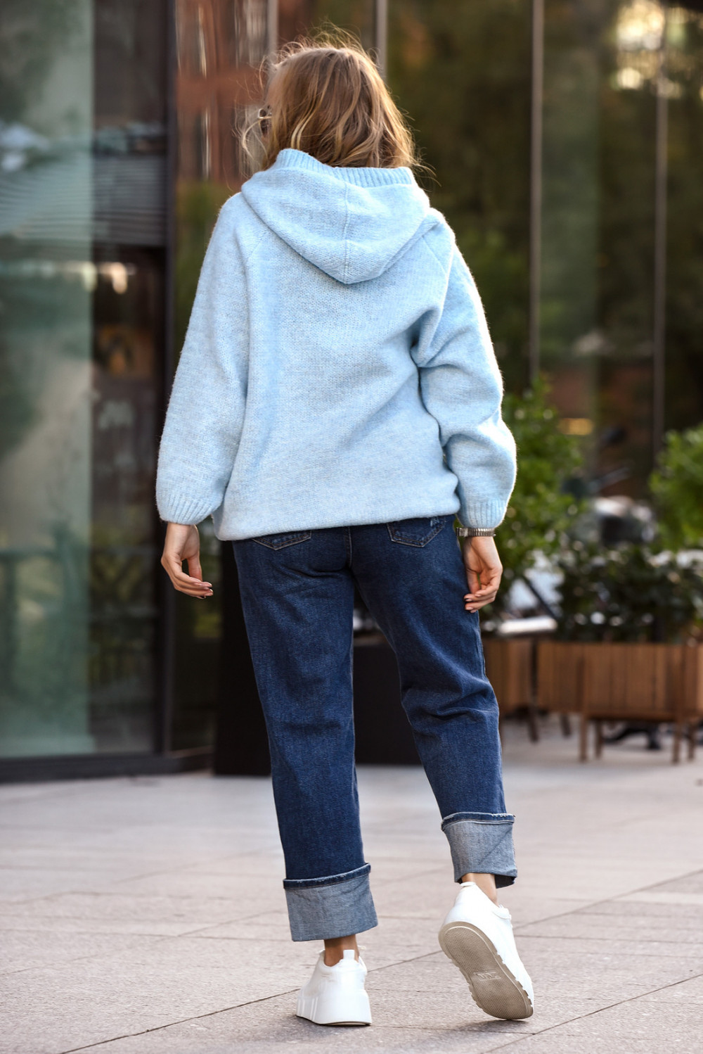 Oversizowy sweter z efektowym wiązaniem na piersiach. Wykonany z wysokiej jakości materiałów, niezwykle ciepły. Model posiada praktyczny kaptur. Zakończony ściągaczami na dole i przy rękawach. Obiecujemy, że nikt nie przejdzie obok Ciebie obojętnie.