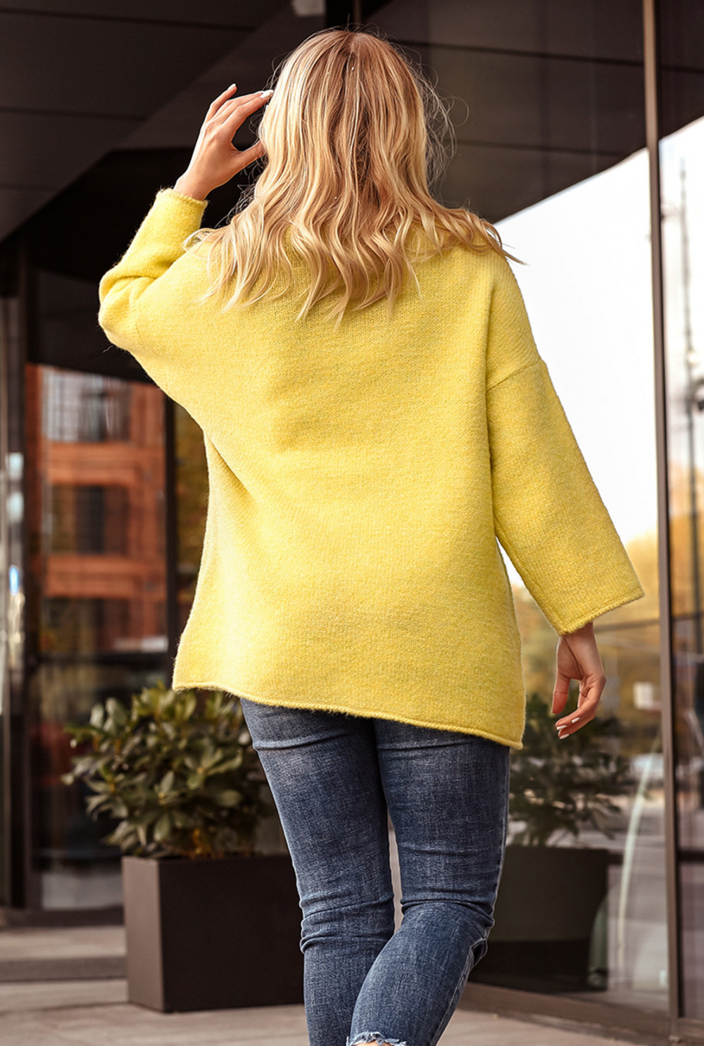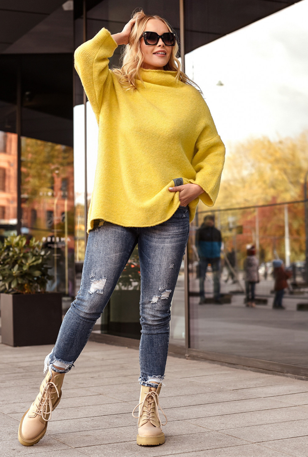 Tunika swetrowa z subtelnym golfem. Model posiada szerszy rękaw. Idealnie sprawdzi się na nadchodzący sezon.