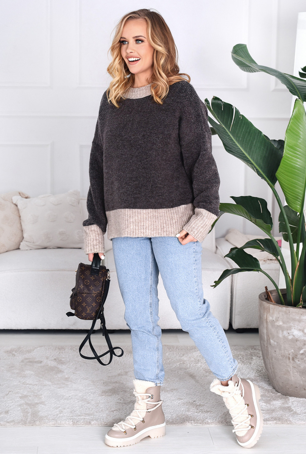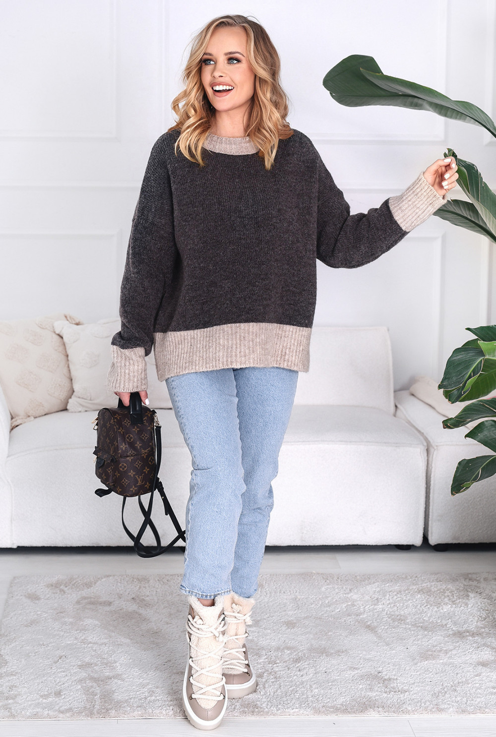 Krótki sweterek wykonany z delikatnego i przyjemnego w dotyku materiału. Model z kolorową plisą, zakończony ściągaczem przy rękawach i na dole. Świetnie sprawdzi się w codziennej stylizacji!