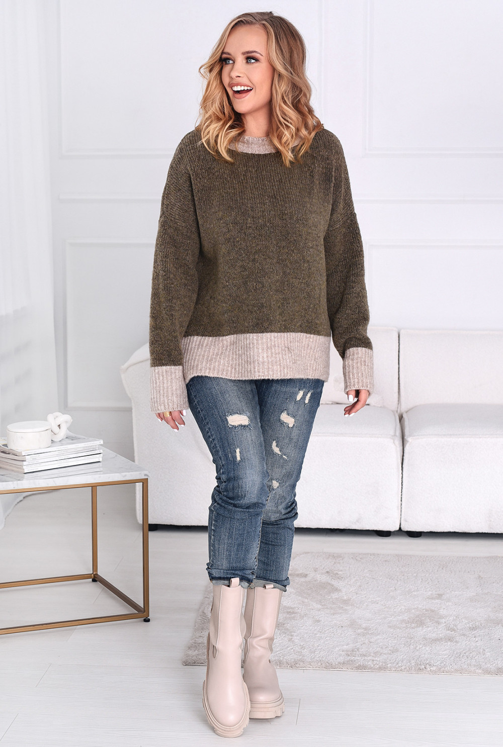 Krótki sweterek wykonany z delikatnego i przyjemnego w dotyku materiału. Model z kolorową plisą, zakończony ściągaczem przy rękawach i na dole. Świetnie sprawdzi się w codziennej stylizacji!