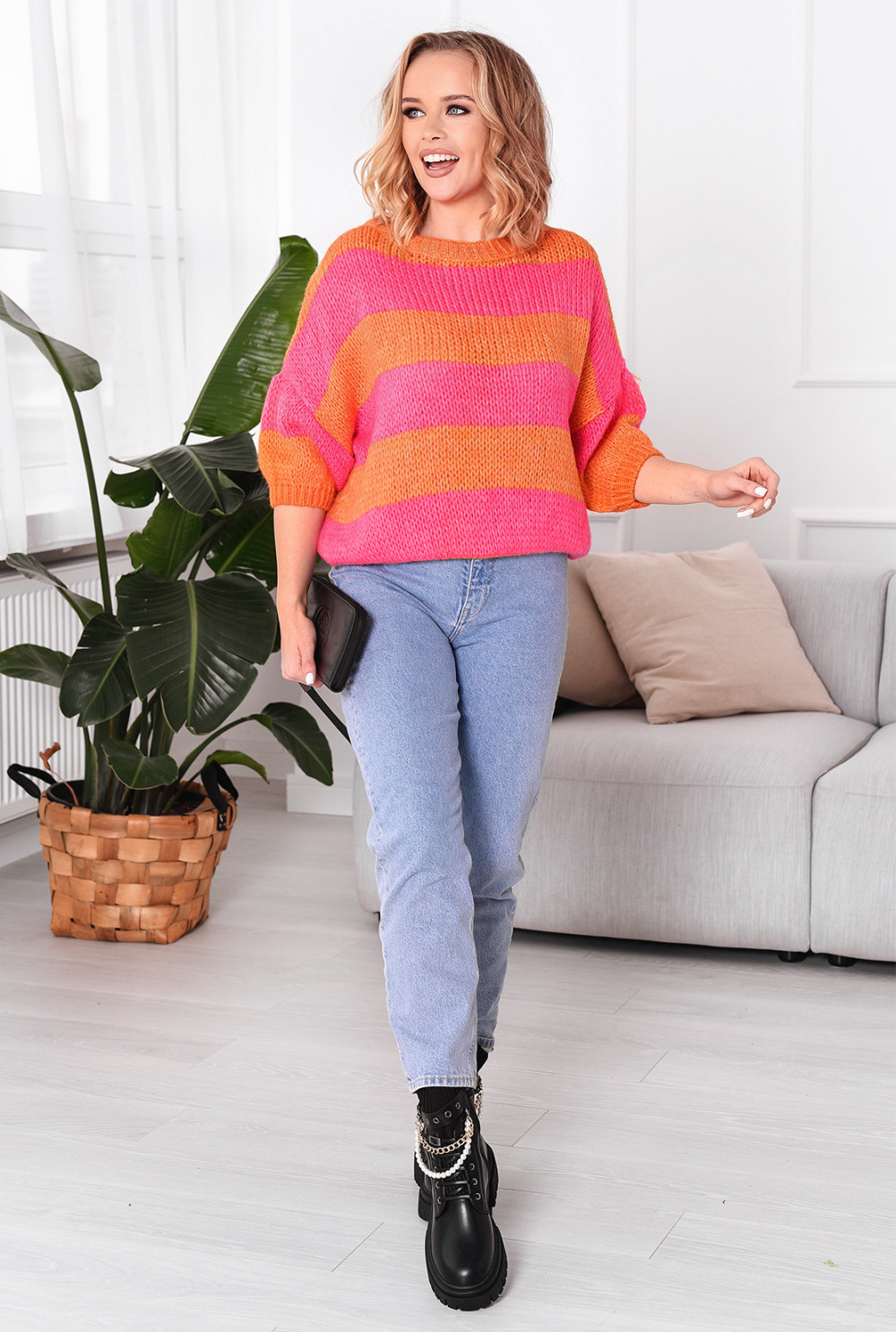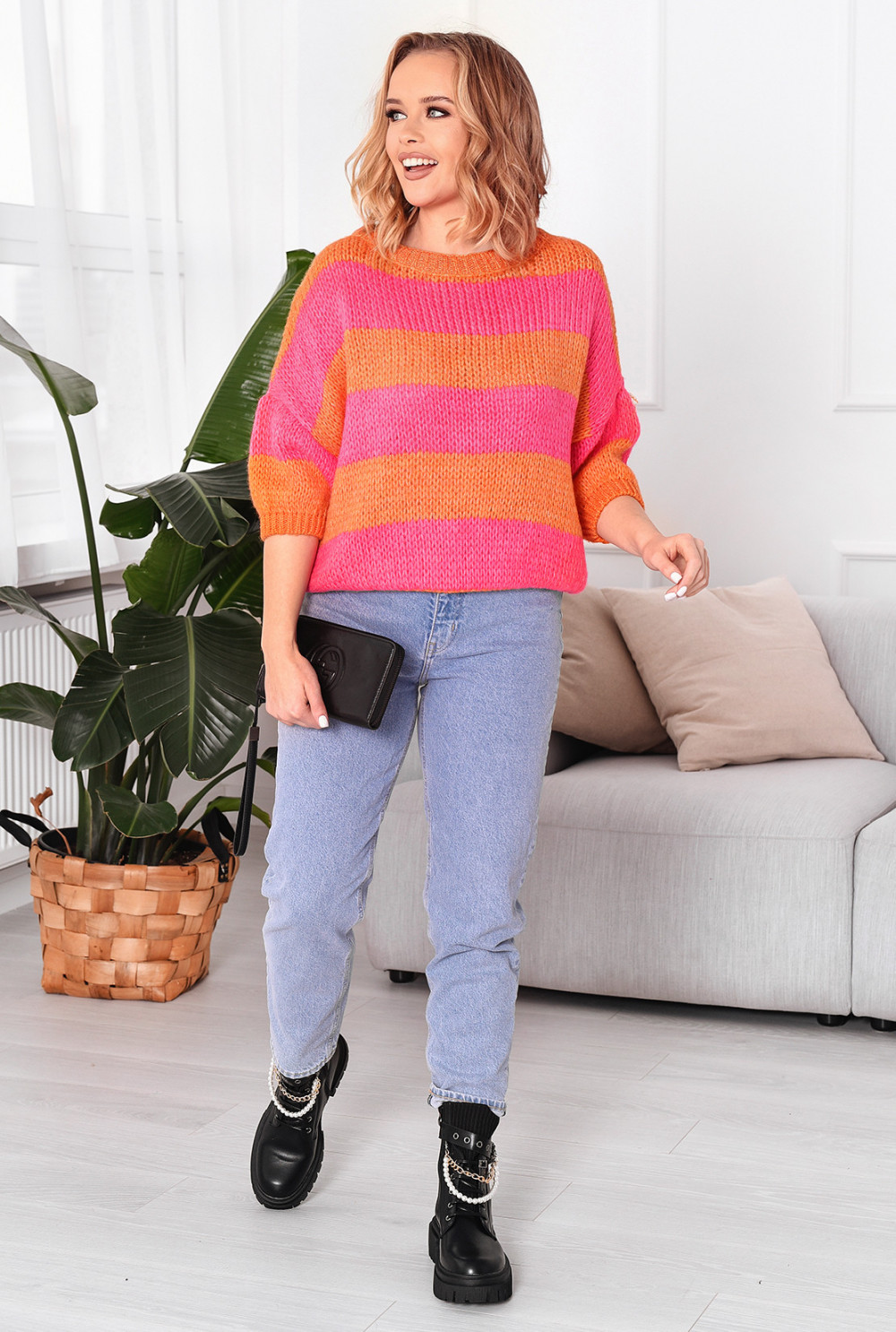 Krótki sweter w paski Gabriella pomarańczowo-fuksjowy