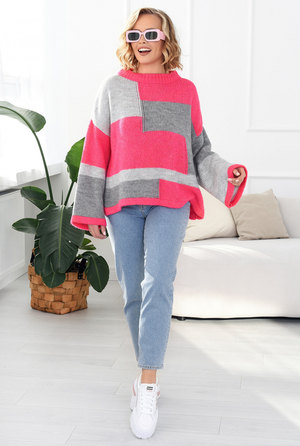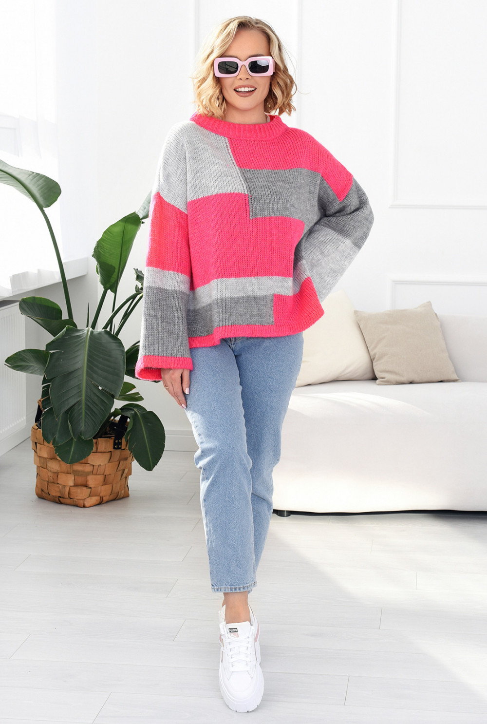 Krótki sweterek z domieszką wełny w składzie wyróżnia się oryginalną kolorystyką! Model z nieco szerszym rękawem, zakończony plisą pod szyją! Świetnie sprawdzi się w wiosennej stylizacji.