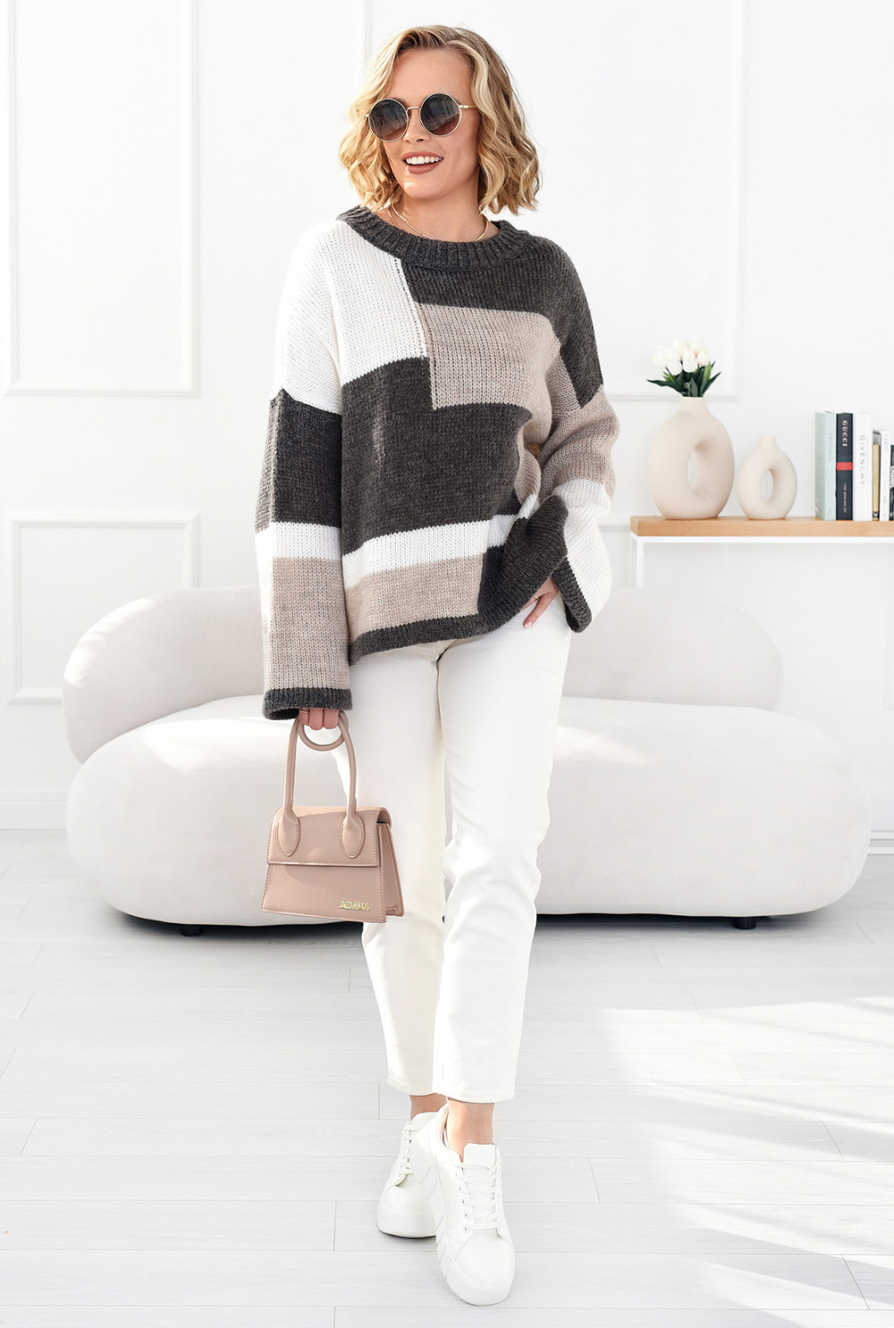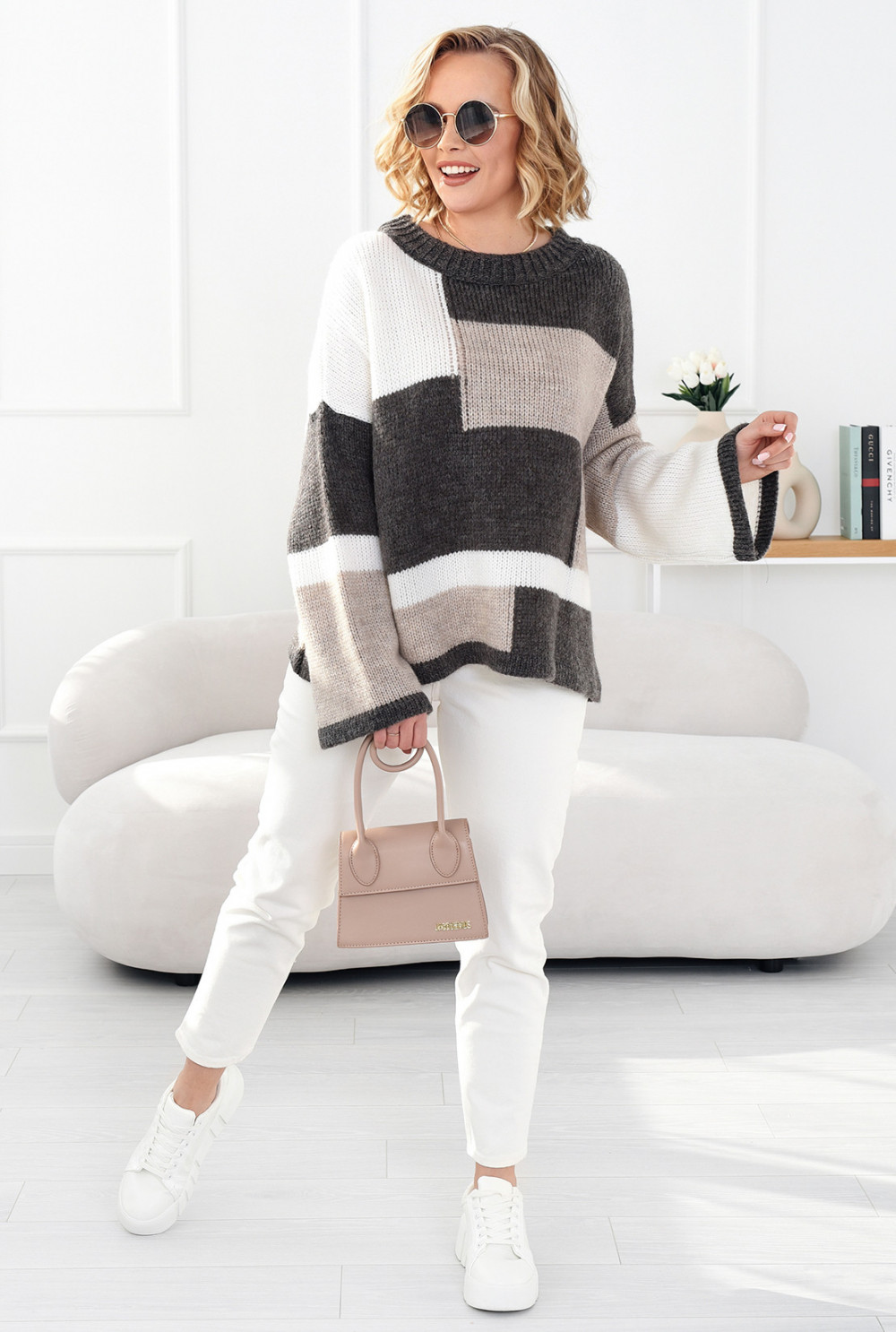 Kolorowy sweter Emilia brąz-ecru