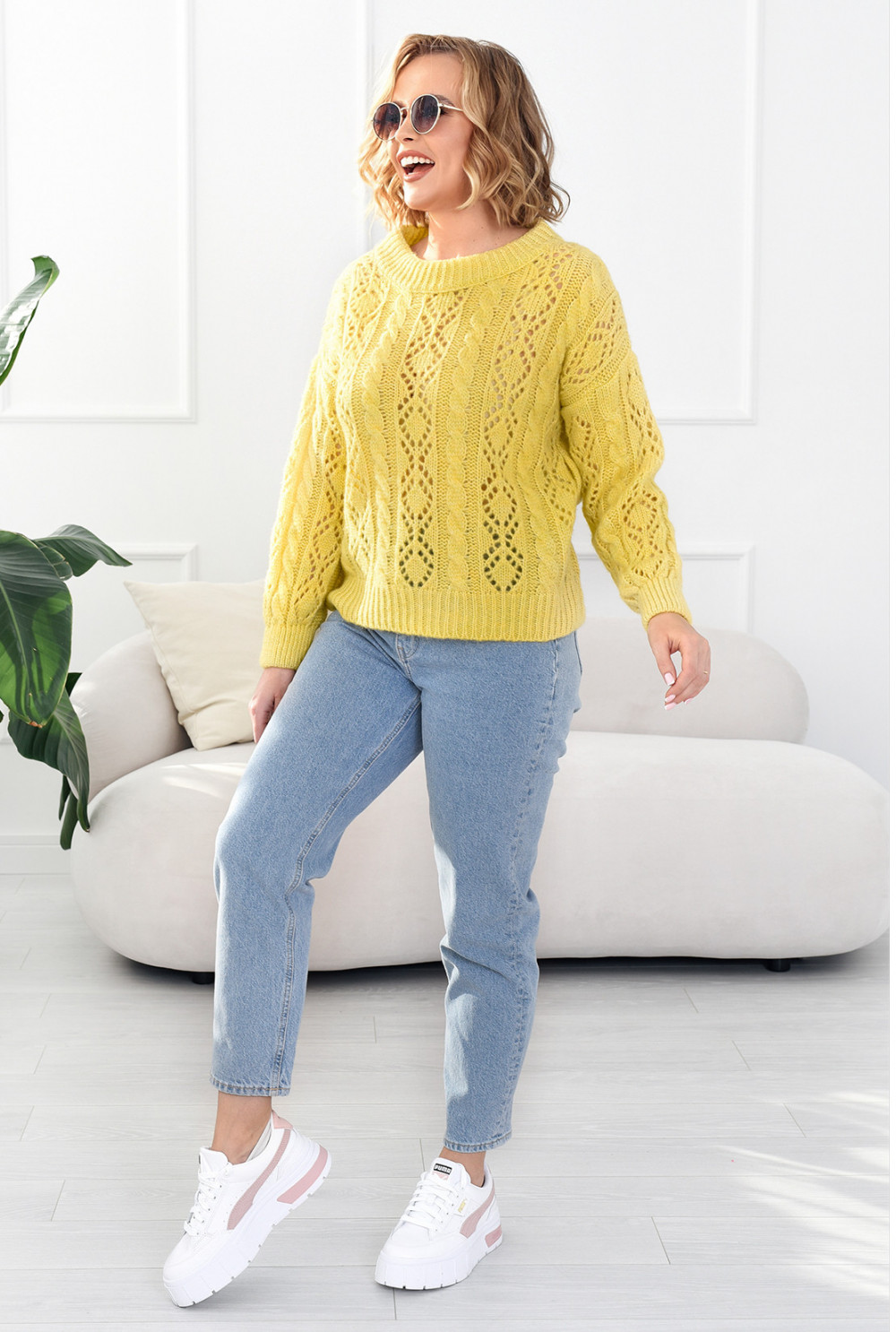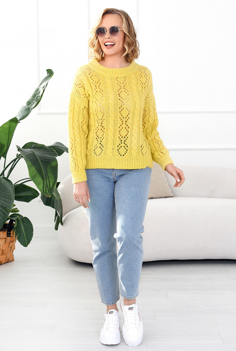 Krótki ażurowy sweter wykonany z najwyższej jakości materiałów. Model zakończony ściągaczami na dole i przy rękawach. Świetnie sprawdzi się na wiosenne i letnie dni!