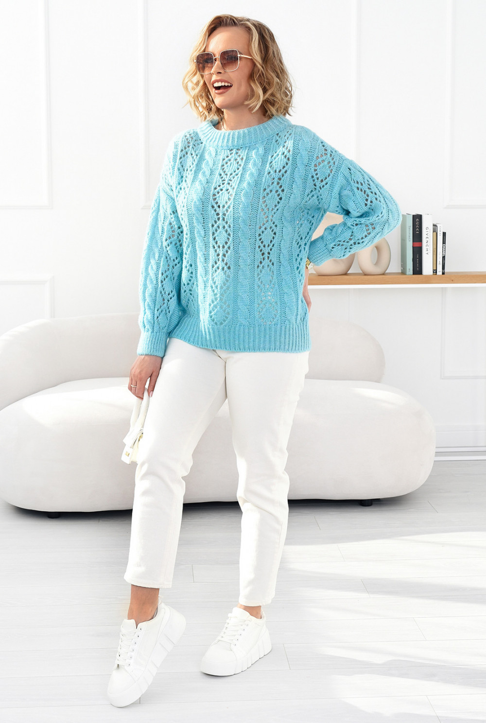 Krótki ażurowy sweter wykonany z najwyższej jakości materiałów. Model zakończony ściągaczami na dole i przy rękawach. Świetnie sprawdzi się na wiosenne i letnie dni!