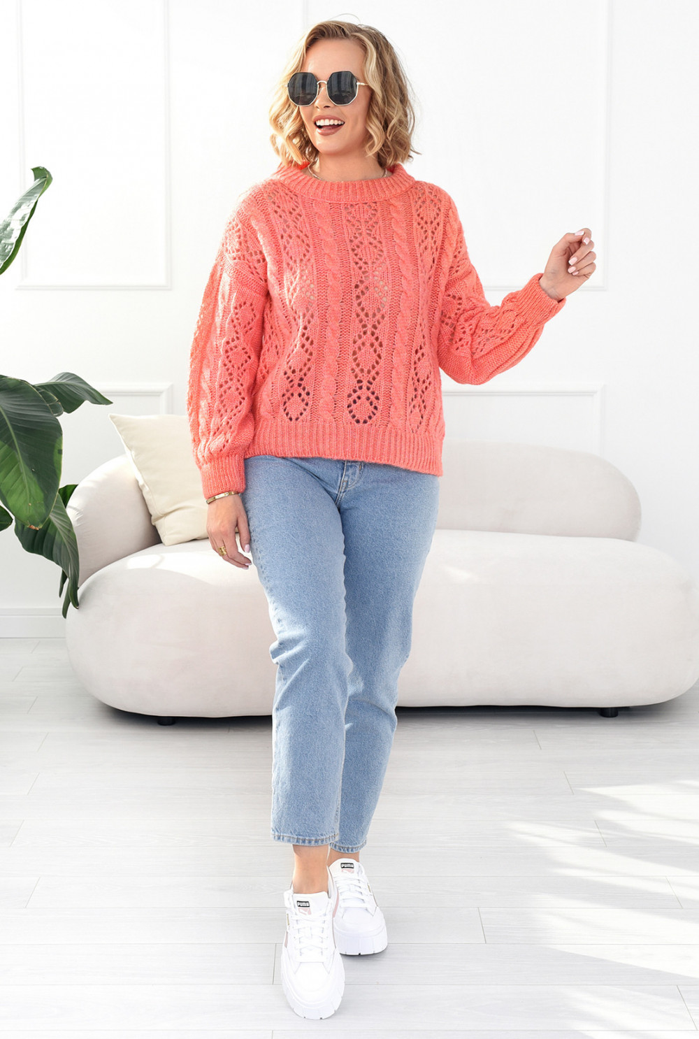 Krótki ażurowy sweter wykonany z najwyższej jakości materiałów. Model zakończony ściągaczami na dole i przy rękawach. Świetnie sprawdzi się na wiosenne i letnie dni!