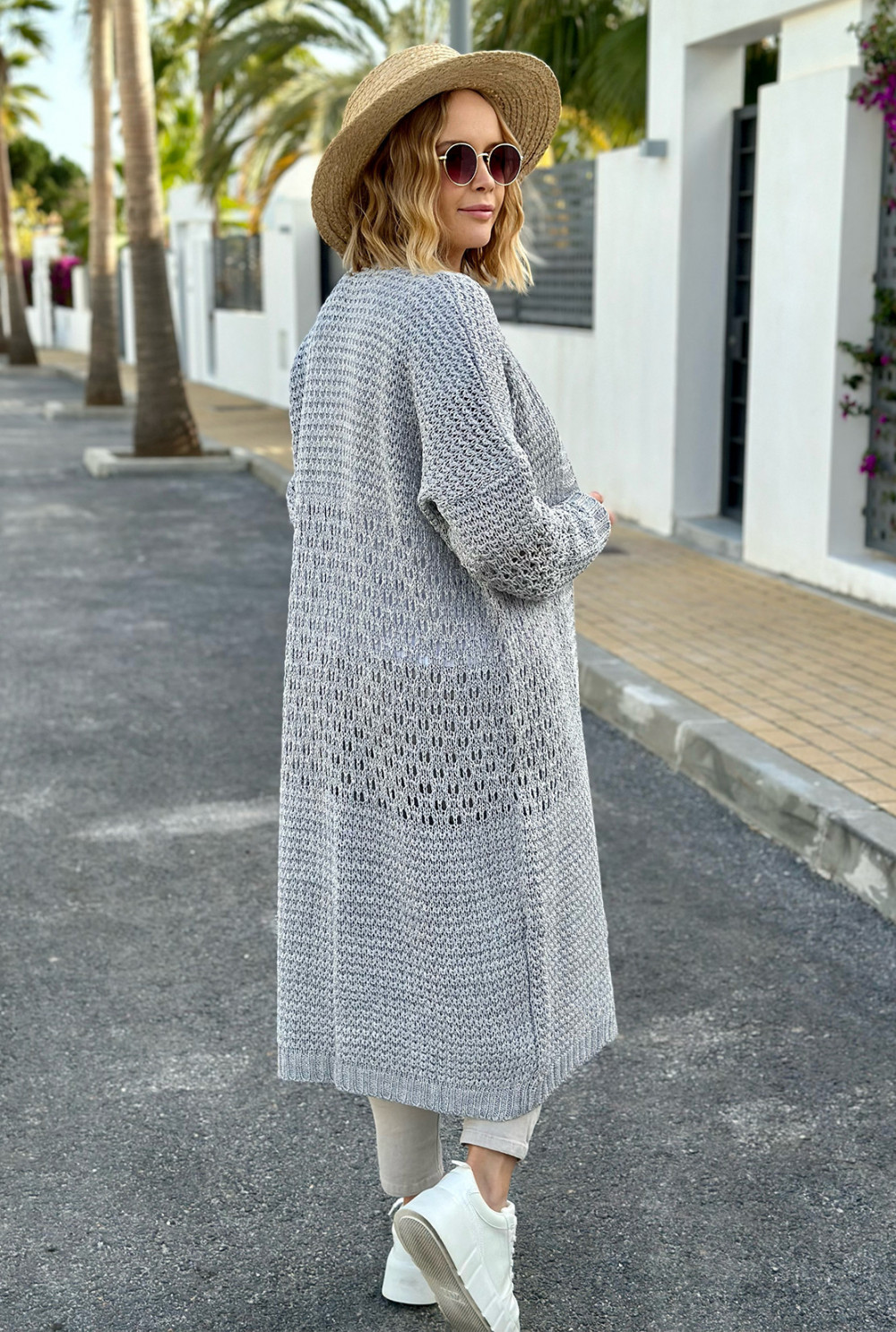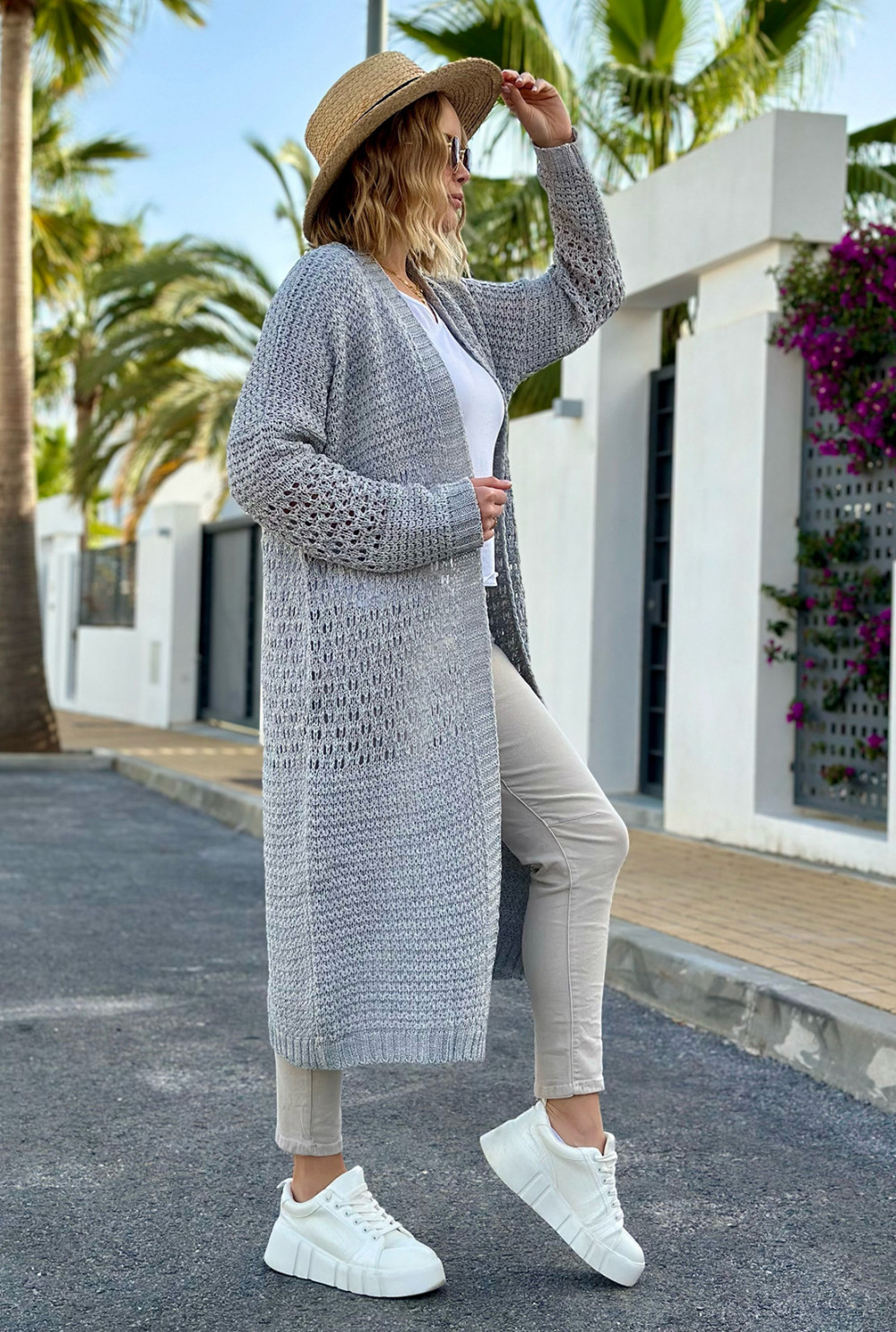 Długi kardigan wykonany z ażurowego splotu. Świetnie dopełni każdą wiosenno-letnią stylizację!