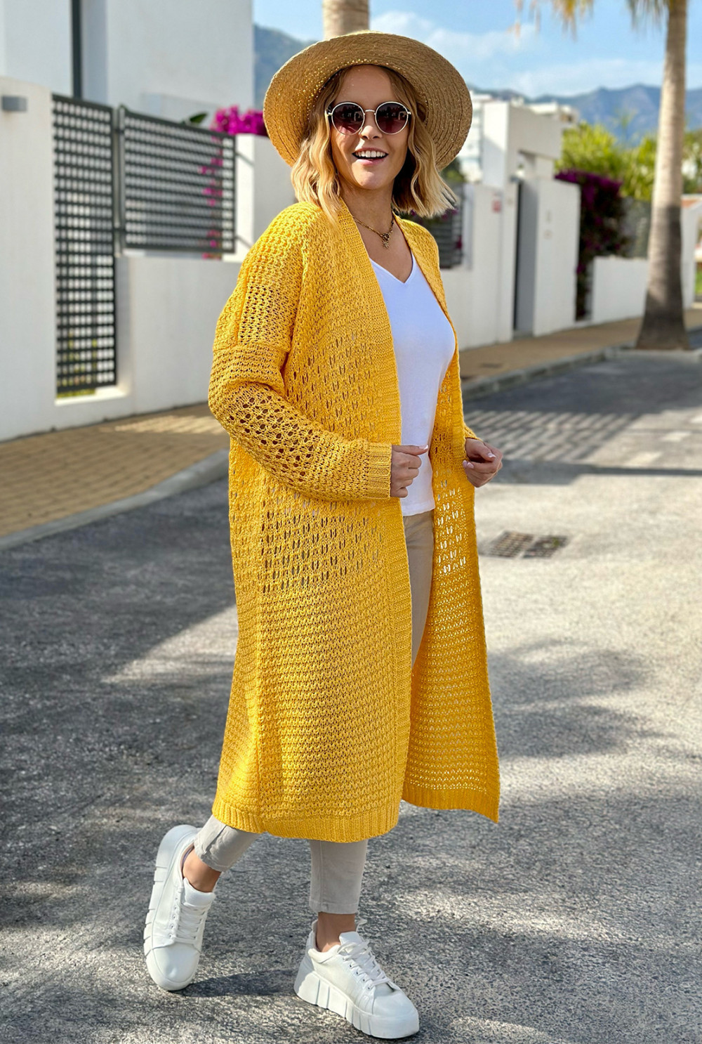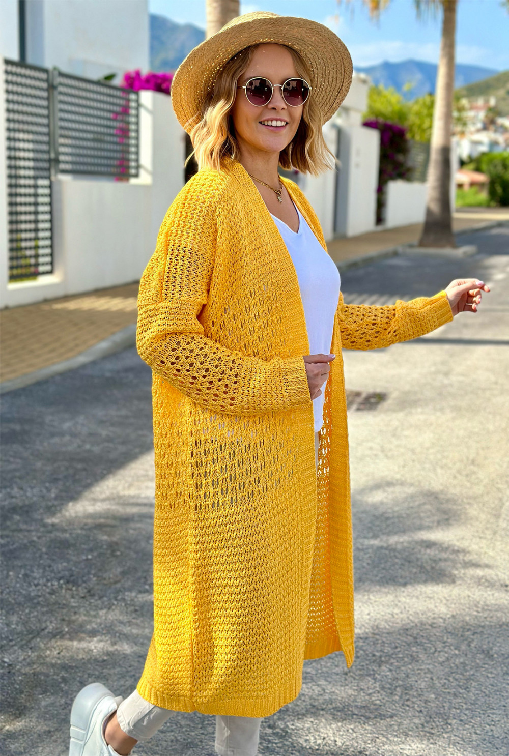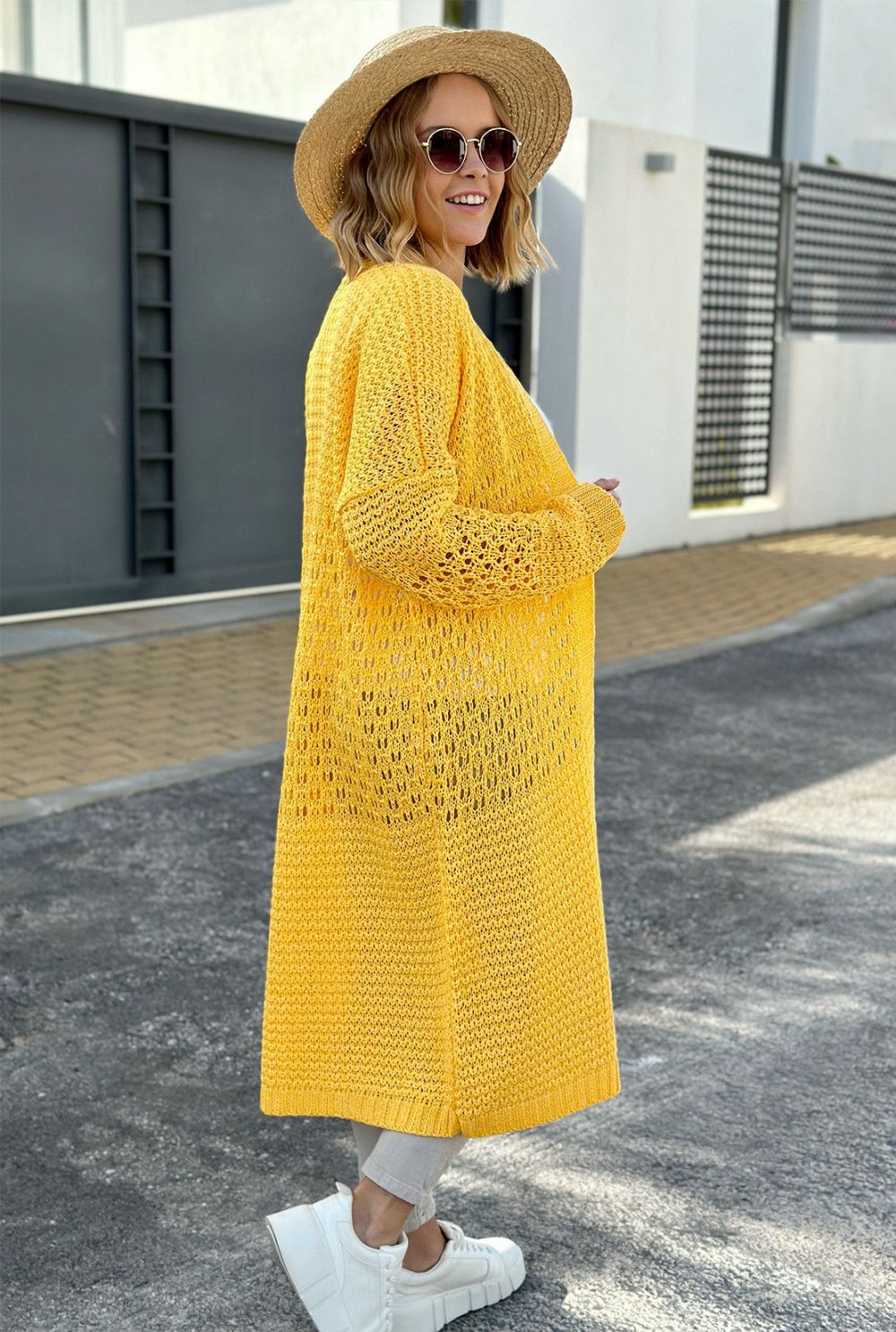 Długi kardigan wykonany z ażurowego splotu. Świetnie dopełni każdą wiosenno-letnią stylizację!