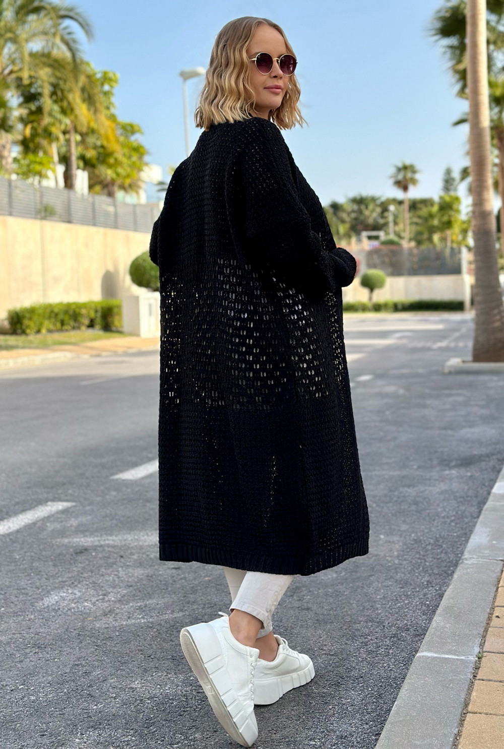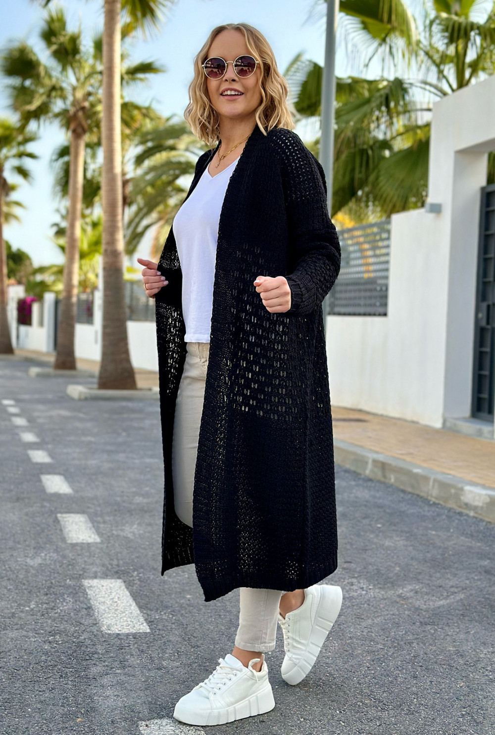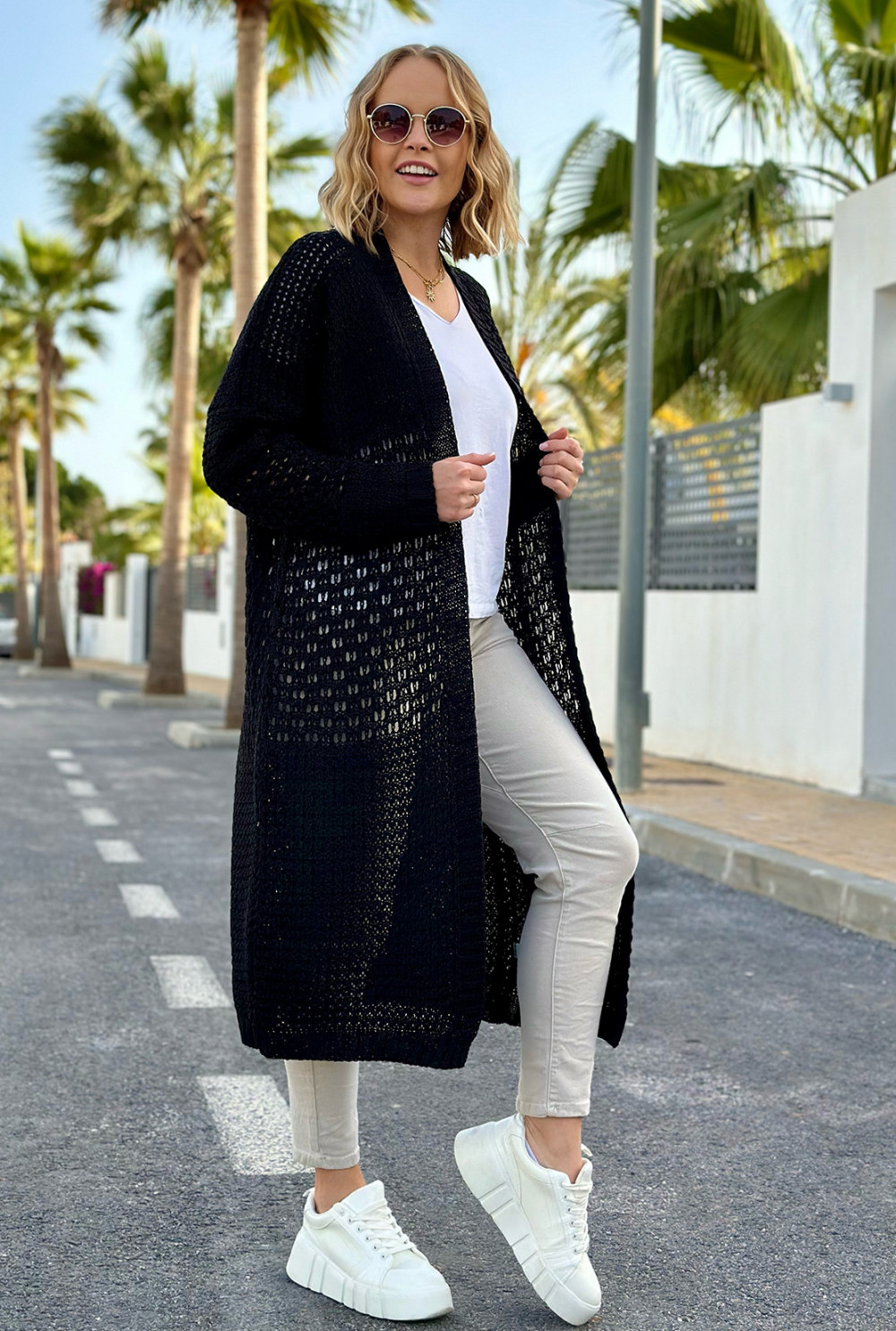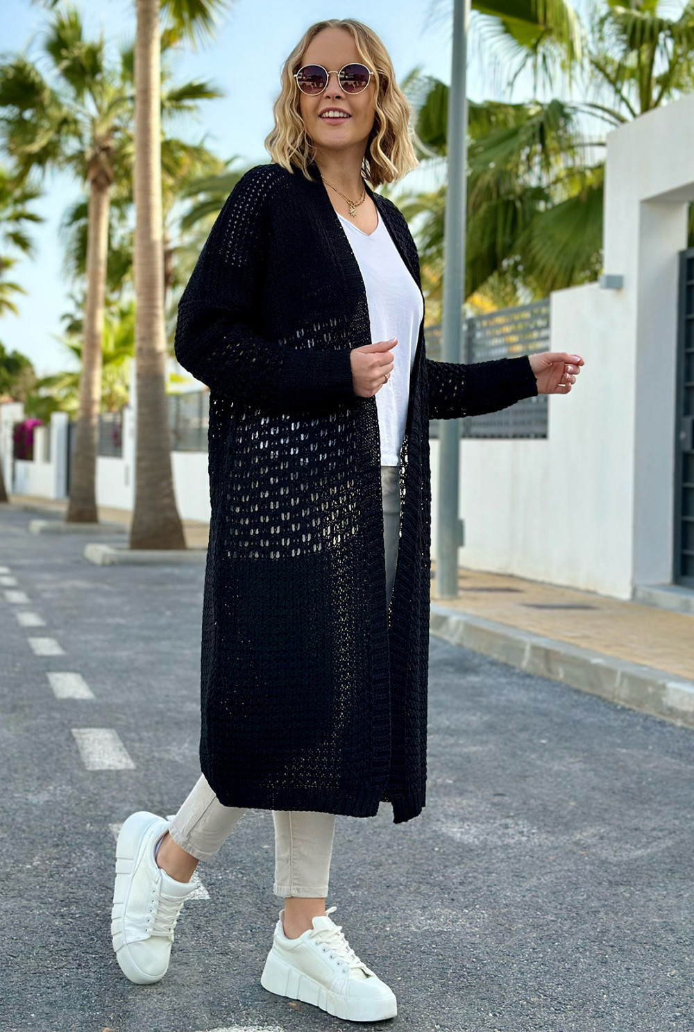 Długi kardigan wykonany z ażurowego splotu. Świetnie dopełni każdą wiosenno-letnią stylizację!