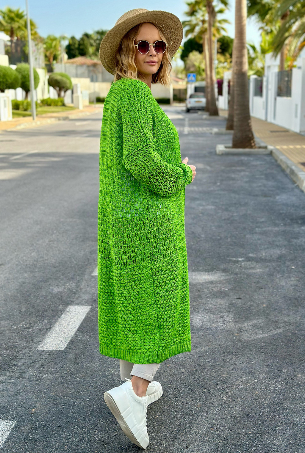 Długi ażurowy kardigan Carla Trawa