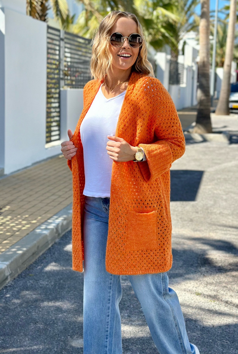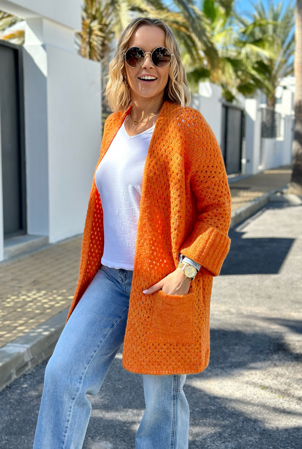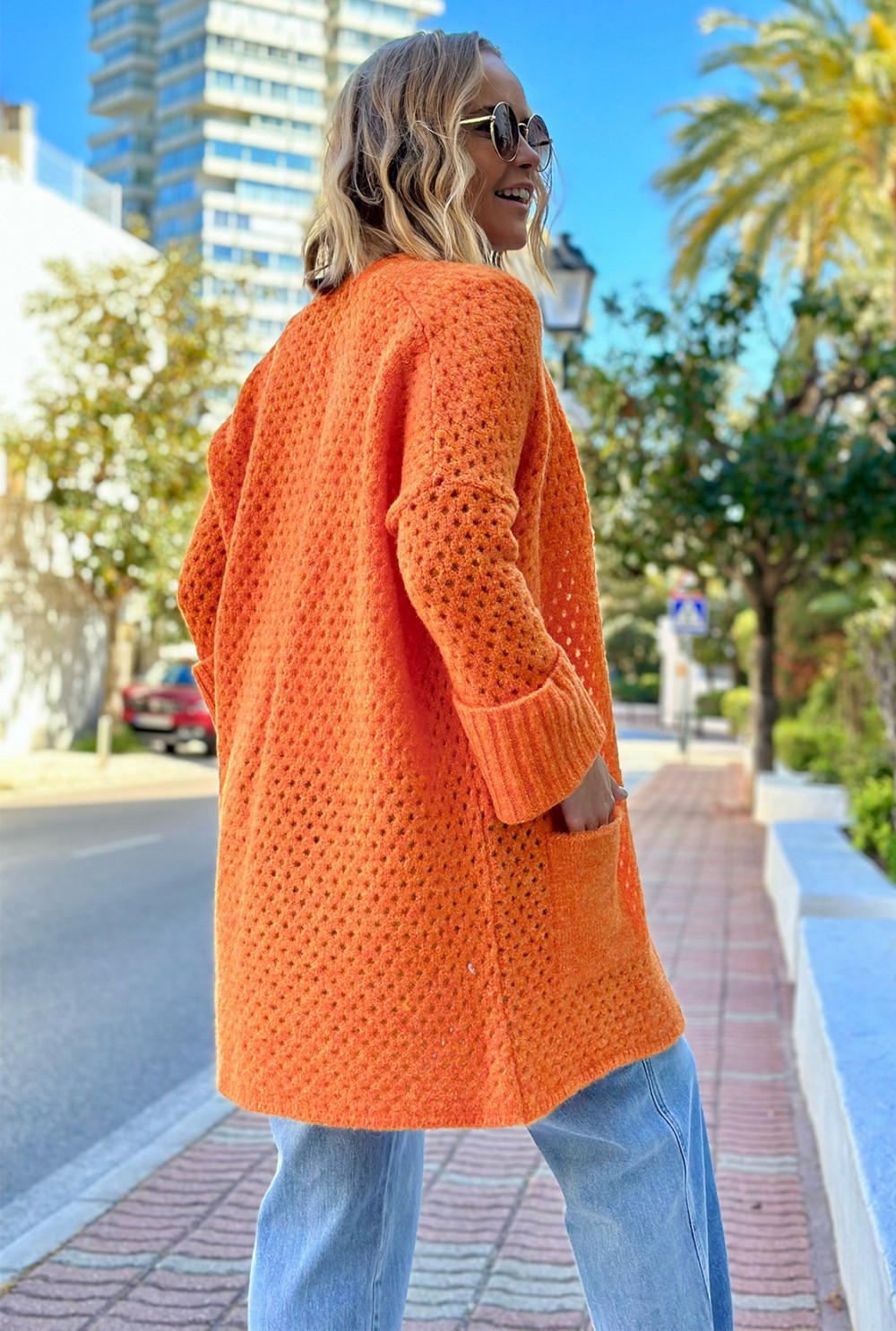 Ażurowy kardigan z kieszeniami Santiago Pomarańcz