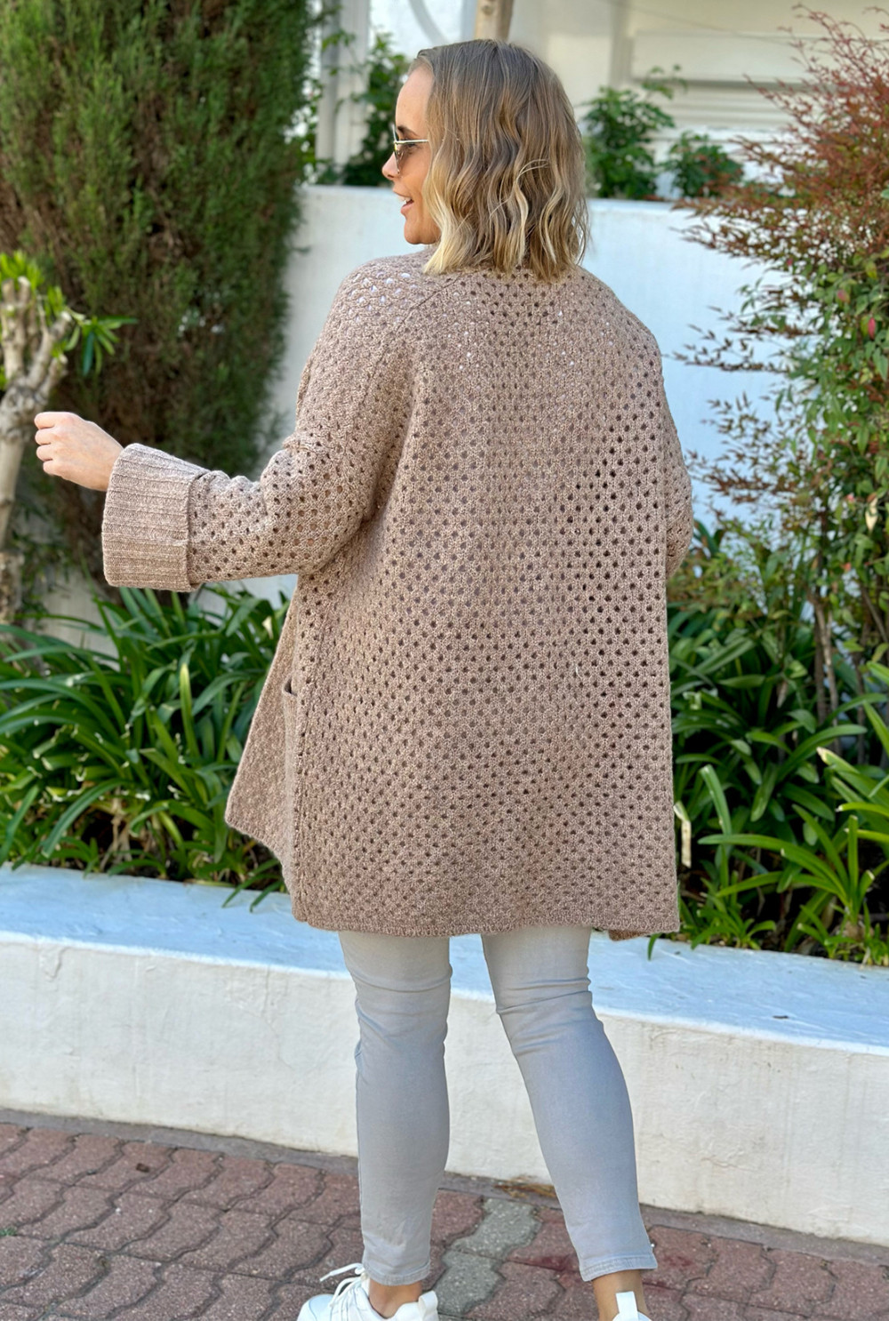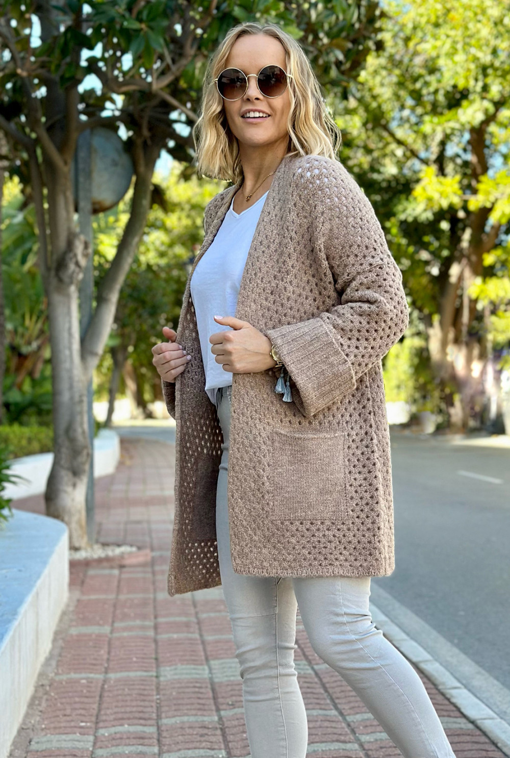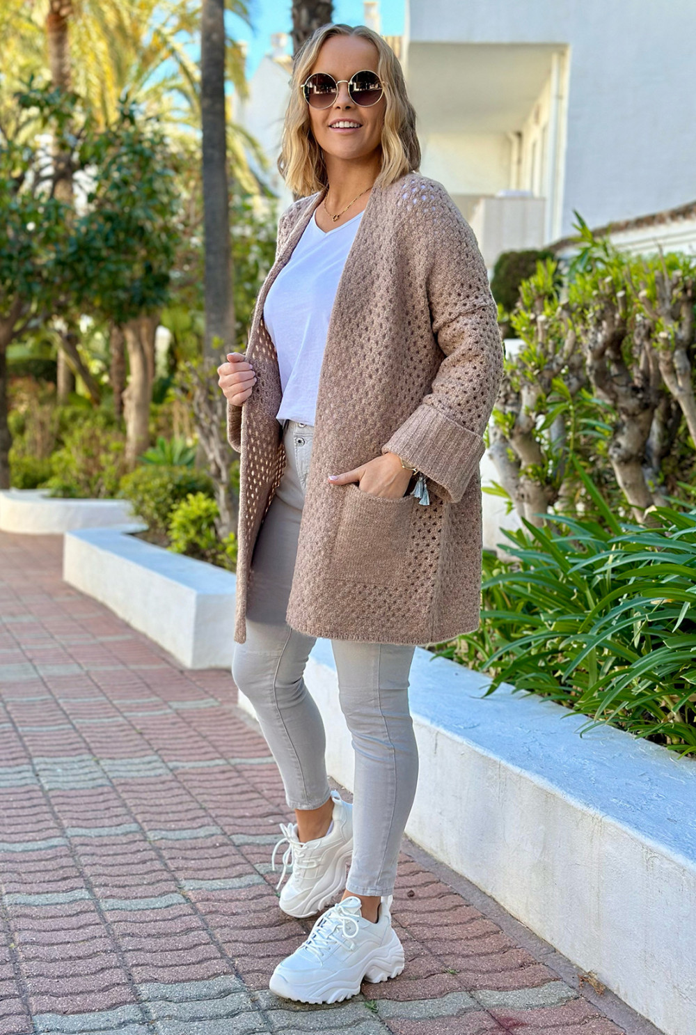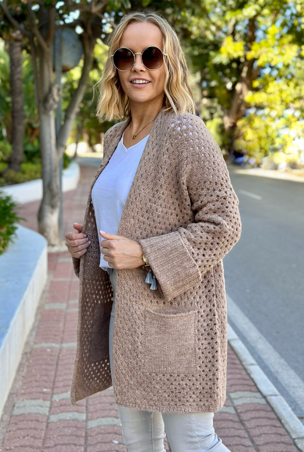 Ażurowy kardigan z kieszeniami Santiago Latte