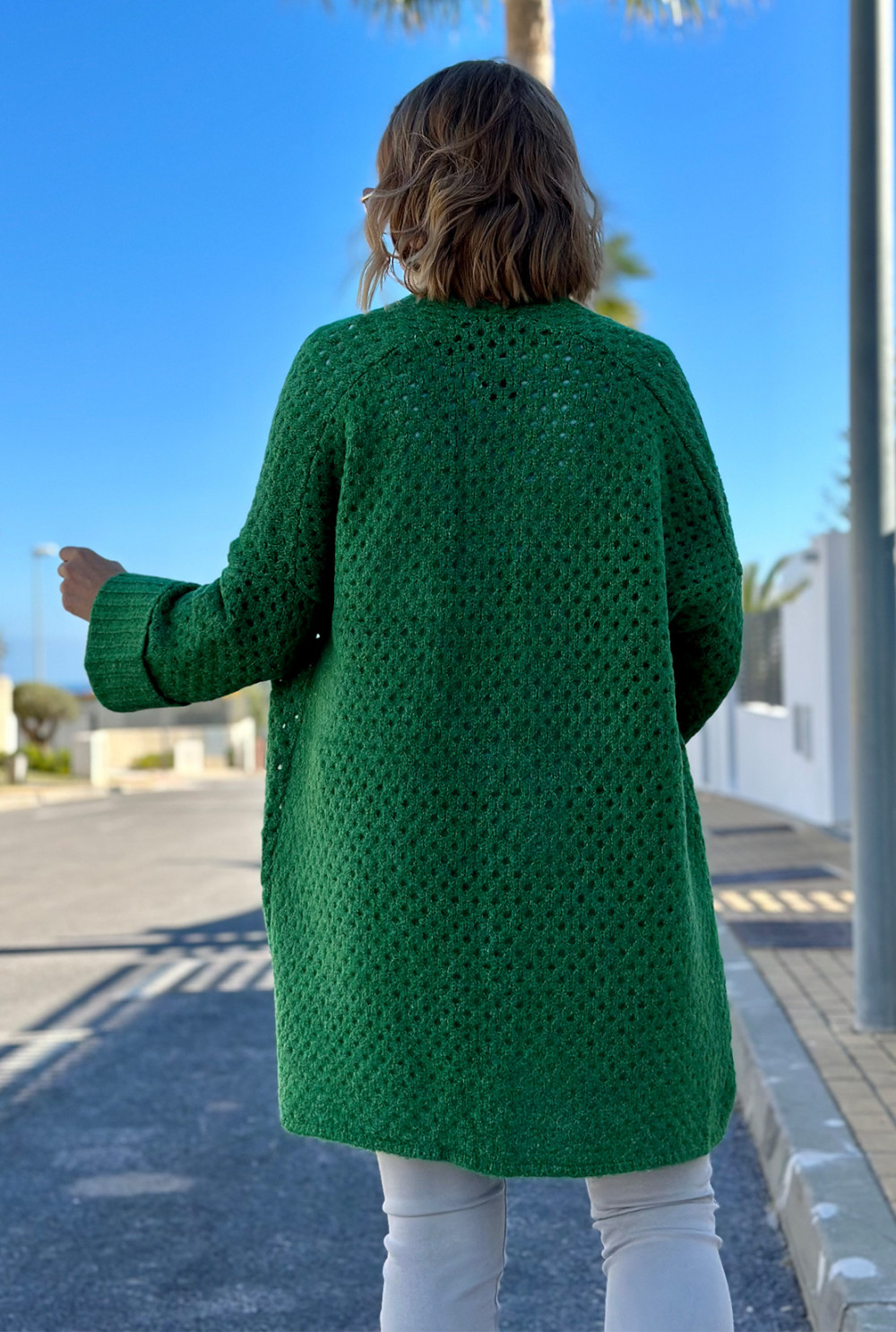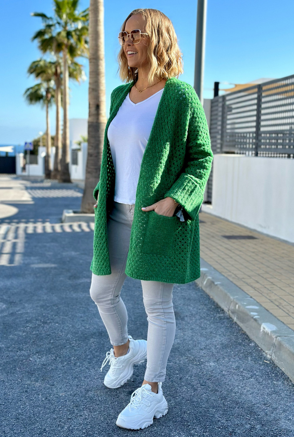 Ażurowy kardigan z kieszeniami Santiago Zielony