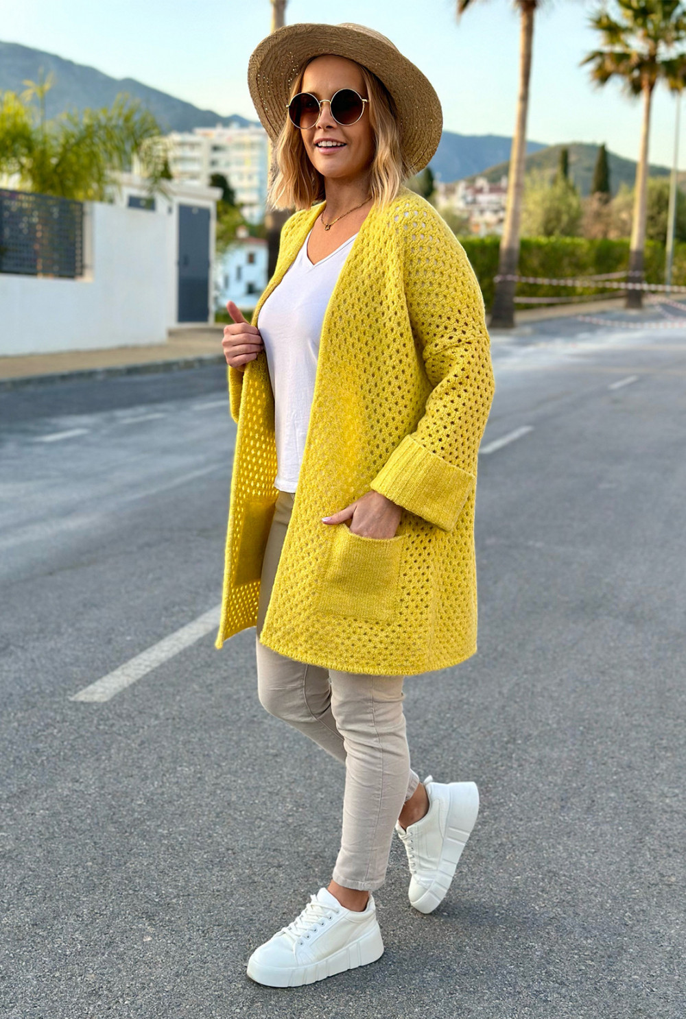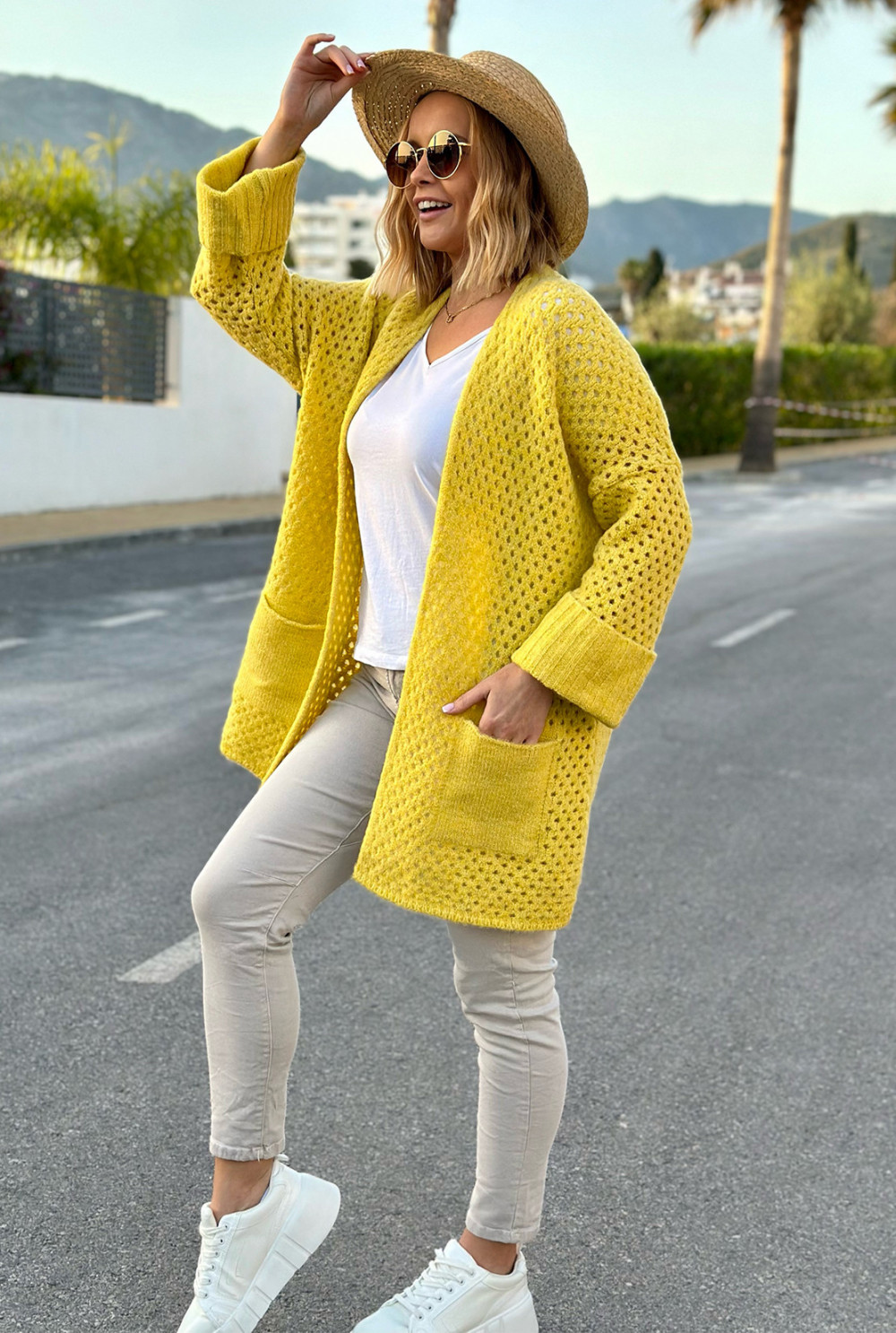 Ażurowy kardigan z kieszeniami Santiago Cytryna