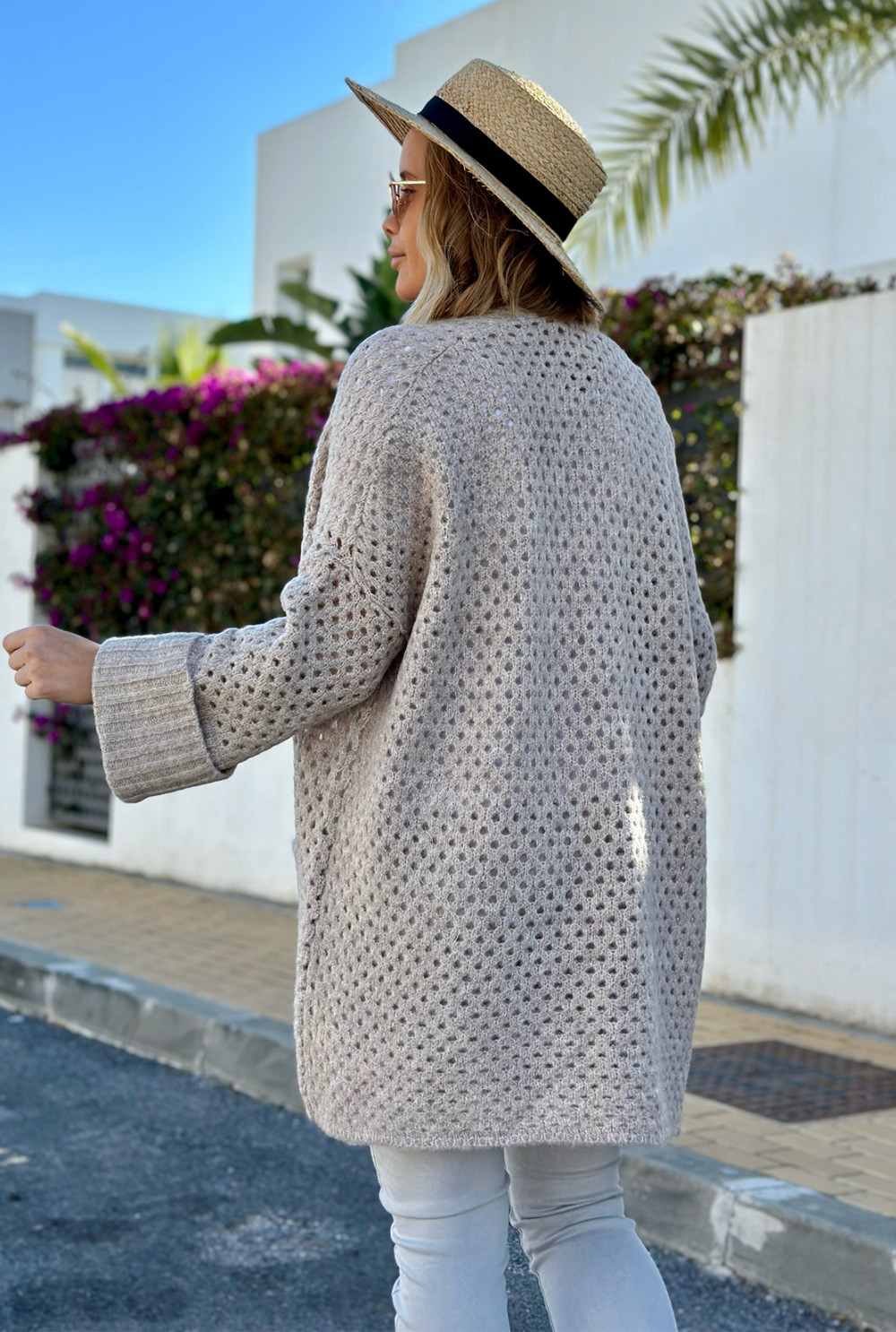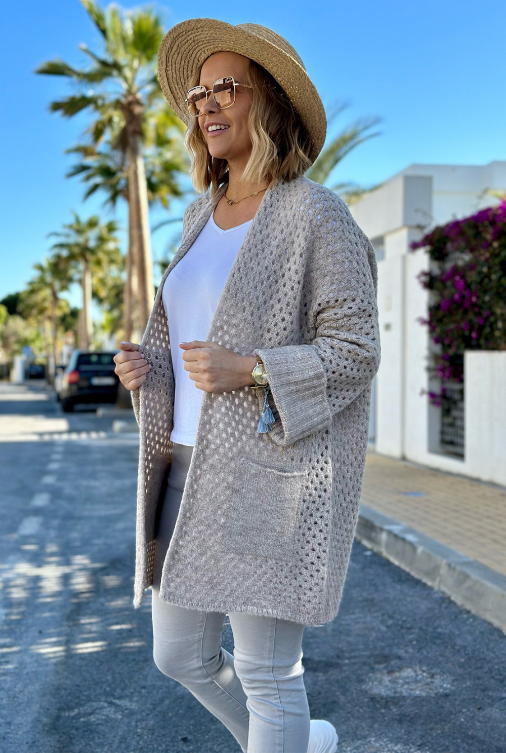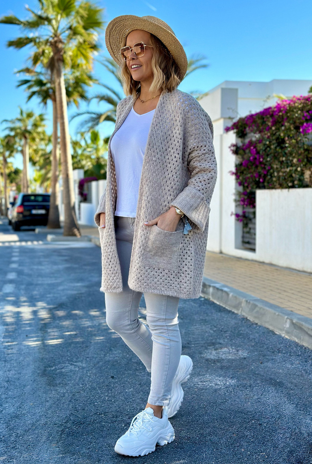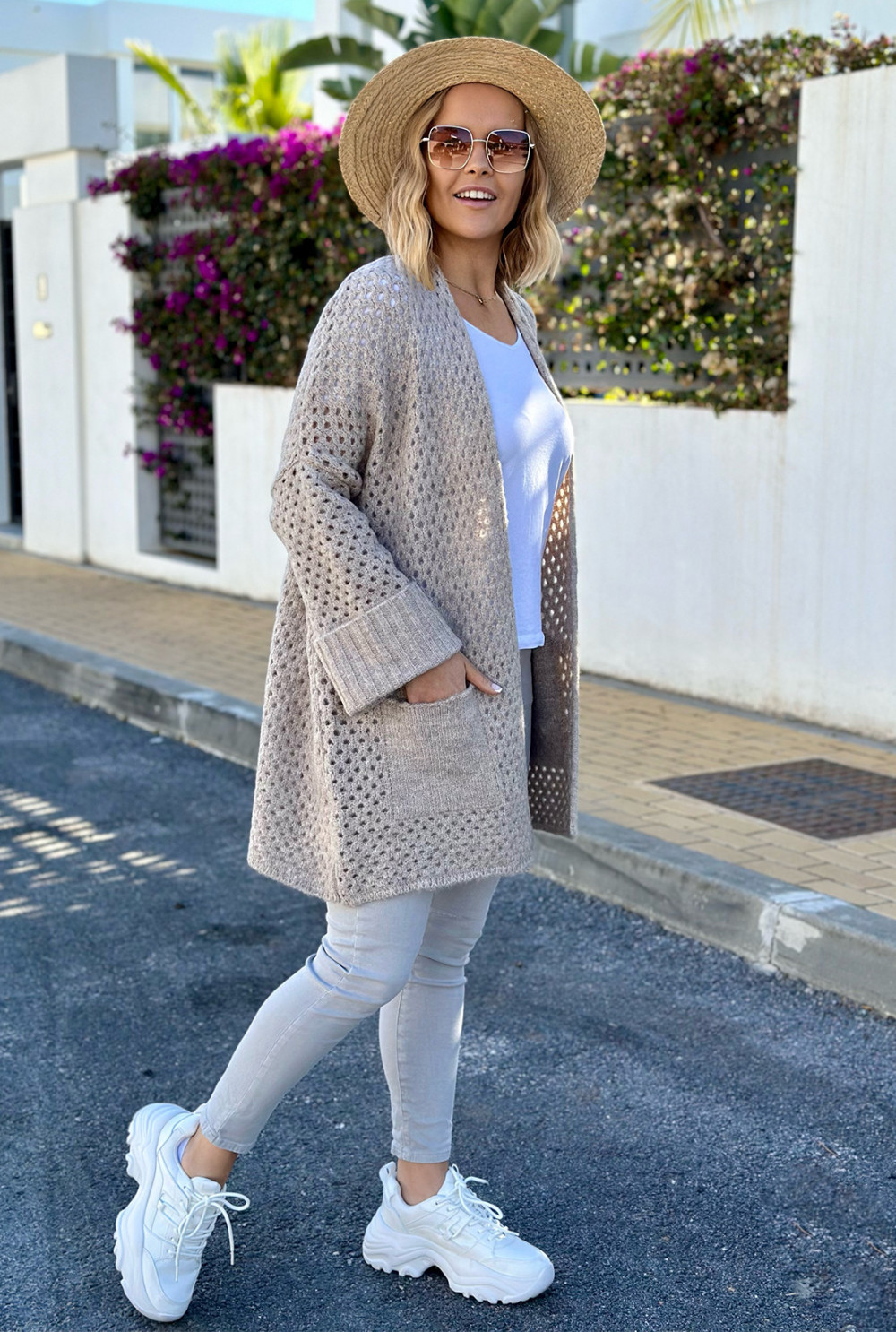 Ażurowy kardigan z kieszeniami Santiago Beż