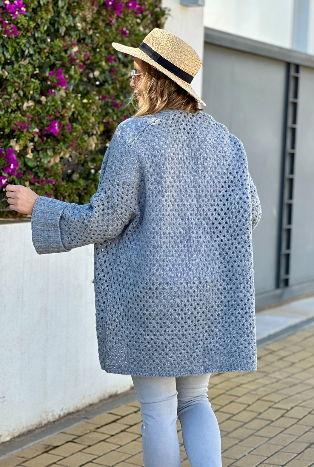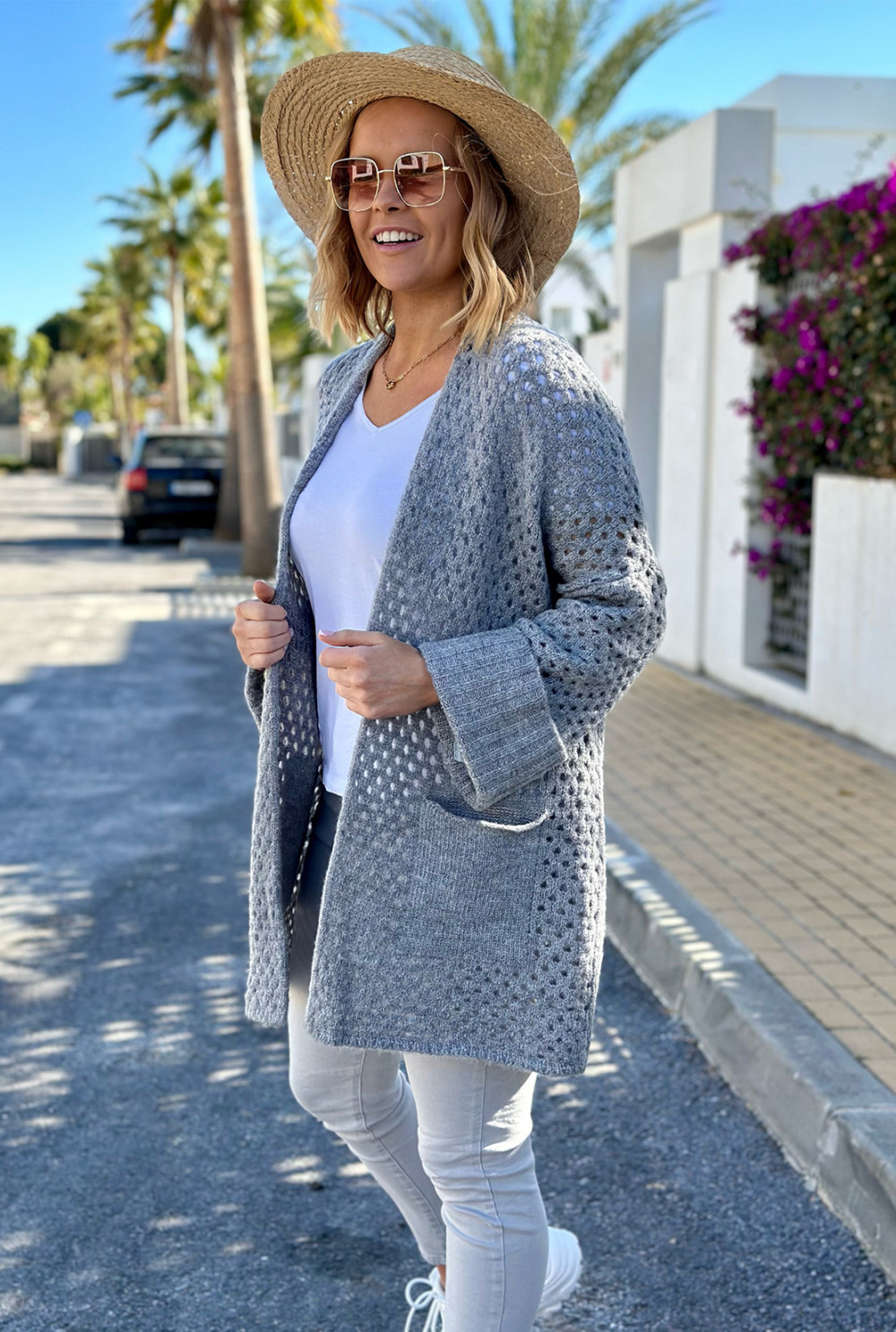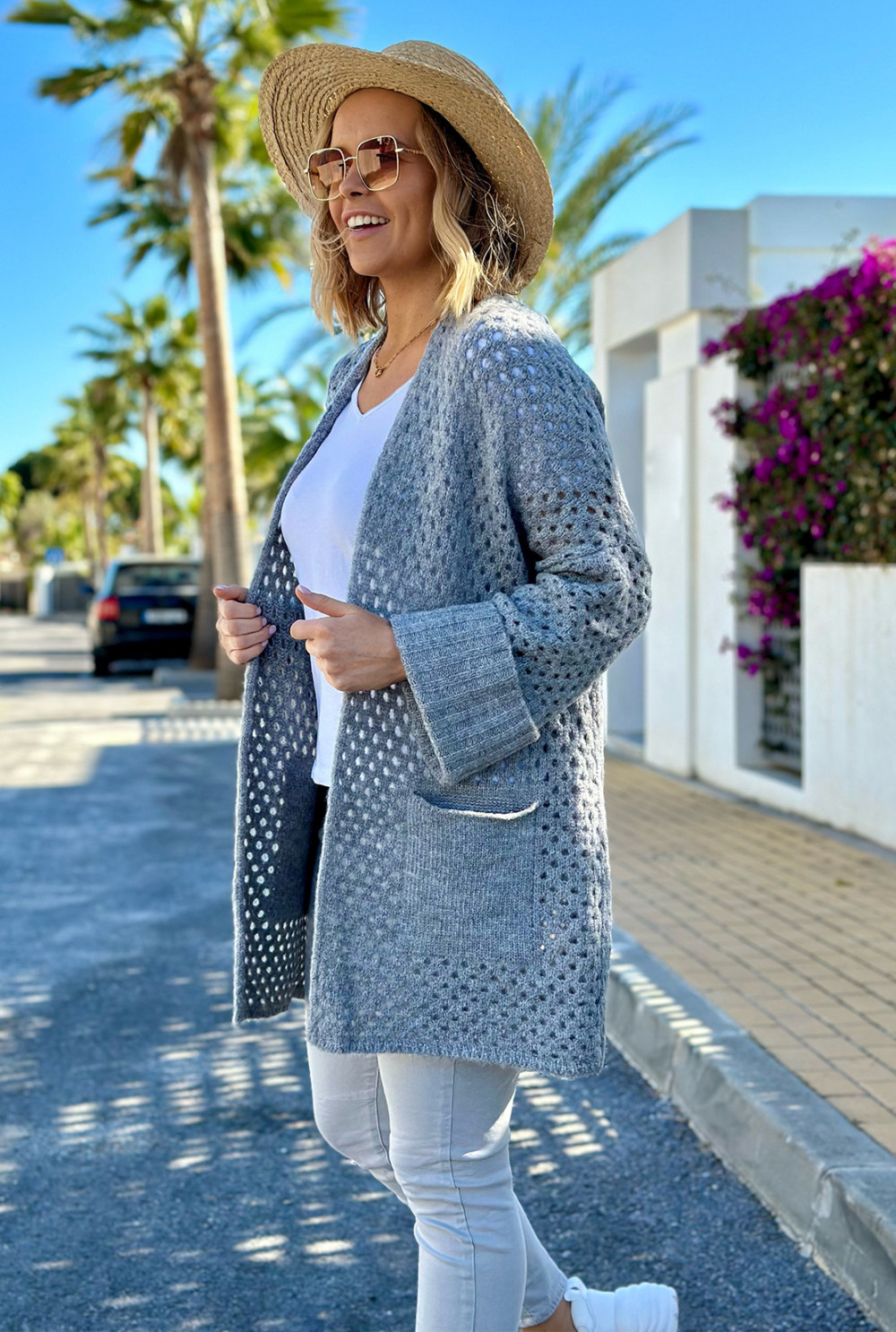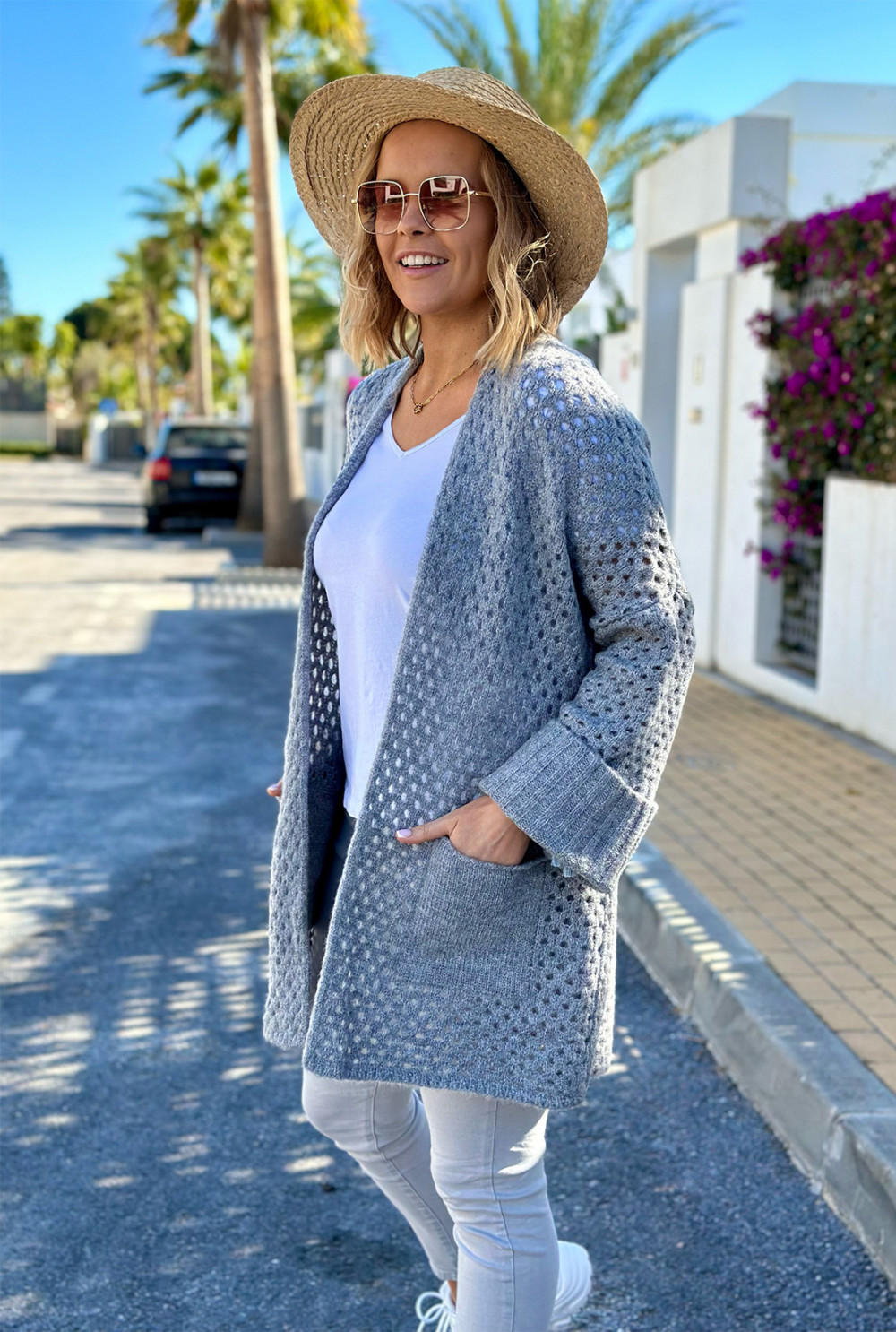 Ażurowy kardigan z kieszeniami Santiago Ciemny Szary
