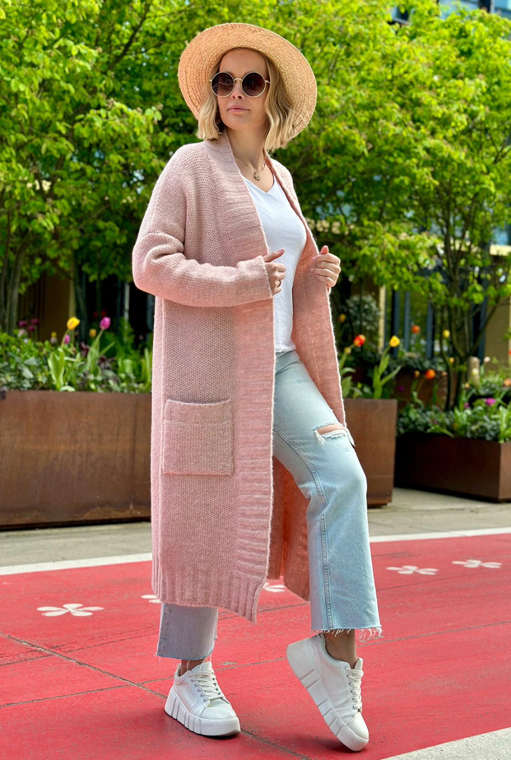 Długi kardigan o prostym kroju wykonany z najwyższej jakości materiałów. Model posiada praktyczne kieszenie. Świetnie dopełni Twoją stylizację! Dostępny jest w wielu kolorach!