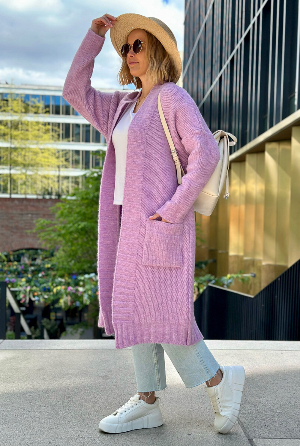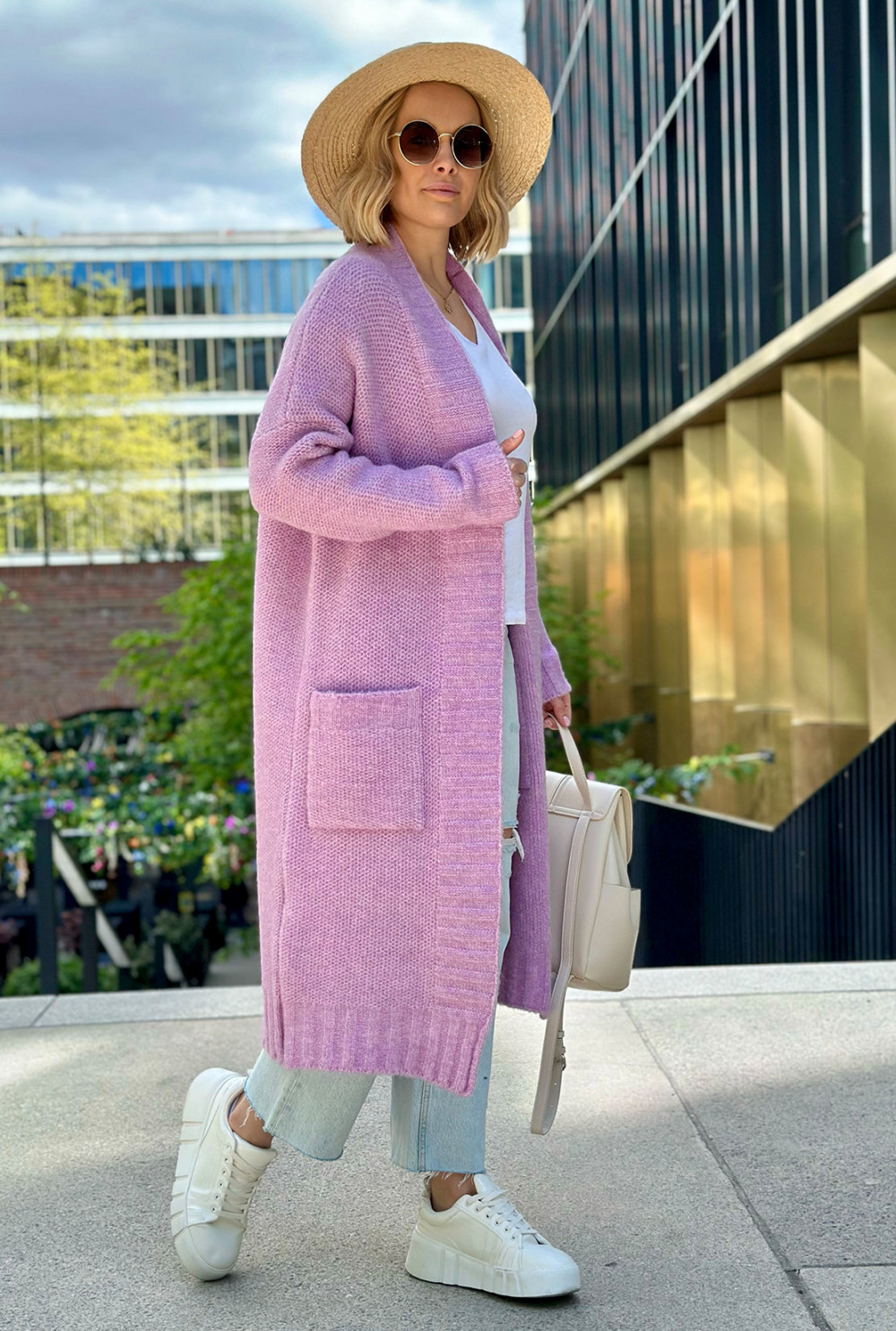 Długi kardigan o prostym kroju wykonany z najwyższej jakości materiałów. Model posiada praktyczne kieszenie. Świetnie dopełni Twoją stylizację! Dostępny jest w wielu kolorach!