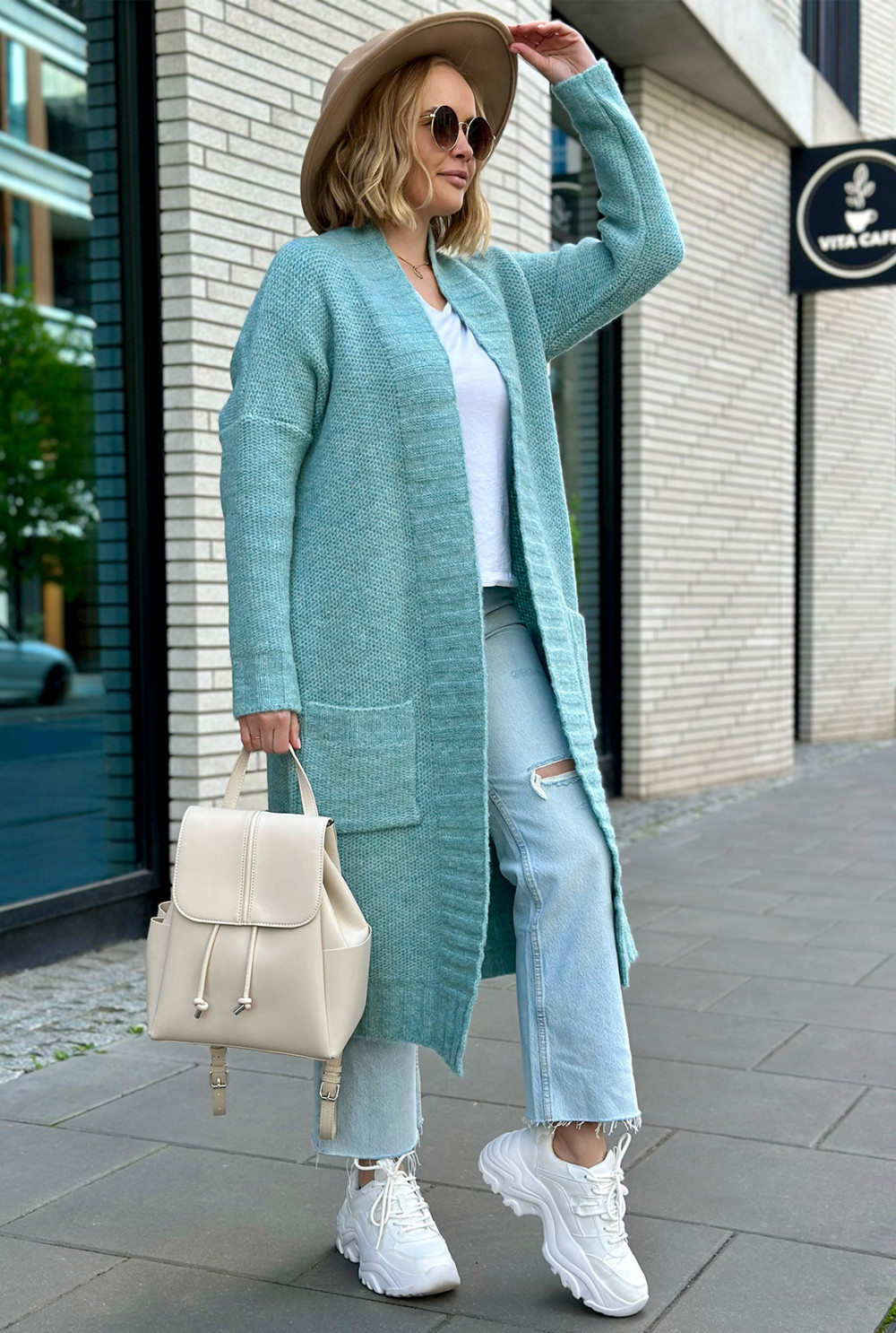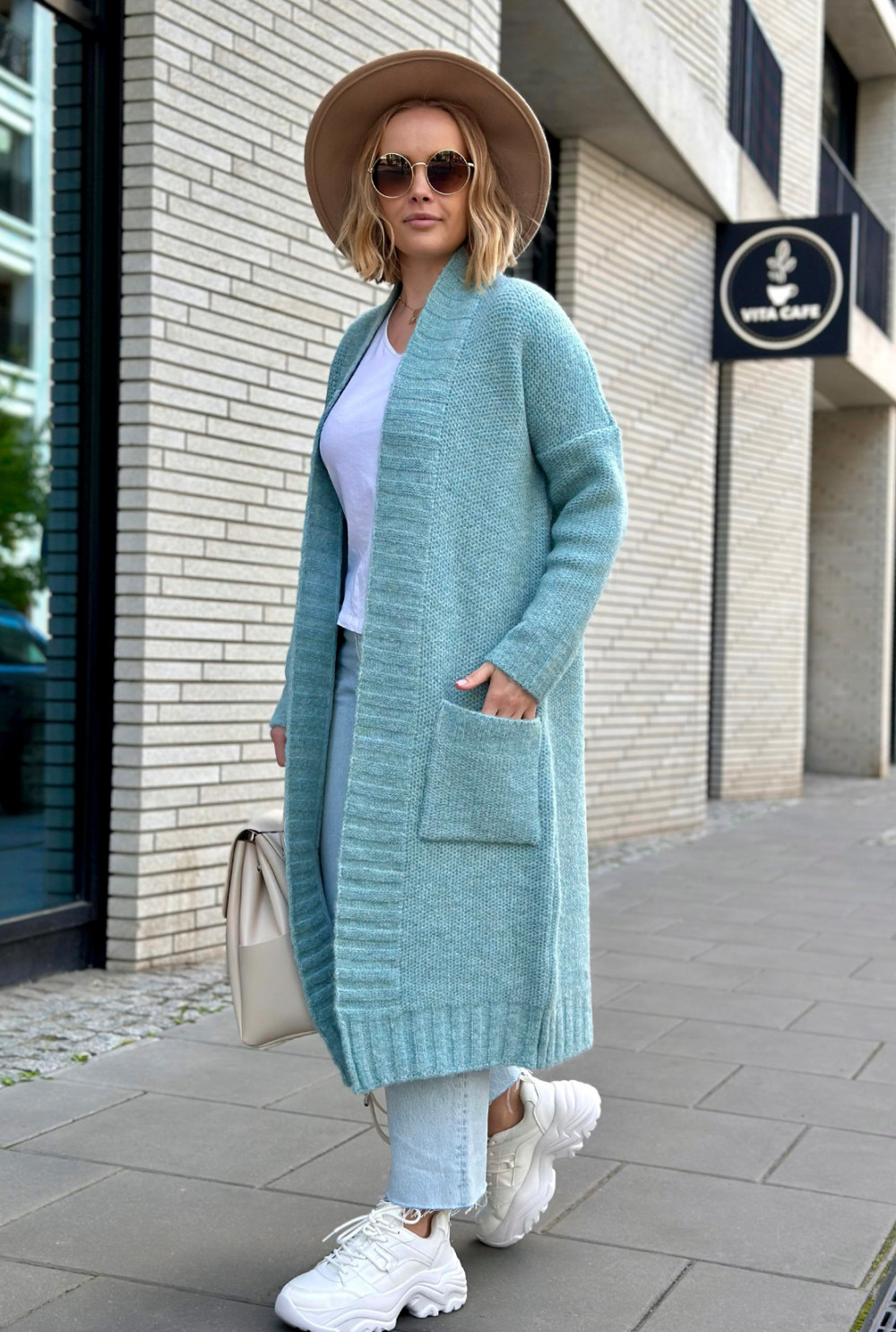 Długi kardigan o prostym kroju wykonany z najwyższej jakości materiałów. Model posiada praktyczne kieszenie. Świetnie dopełni Twoją stylizację! Dostępny jest w wielu kolorach!