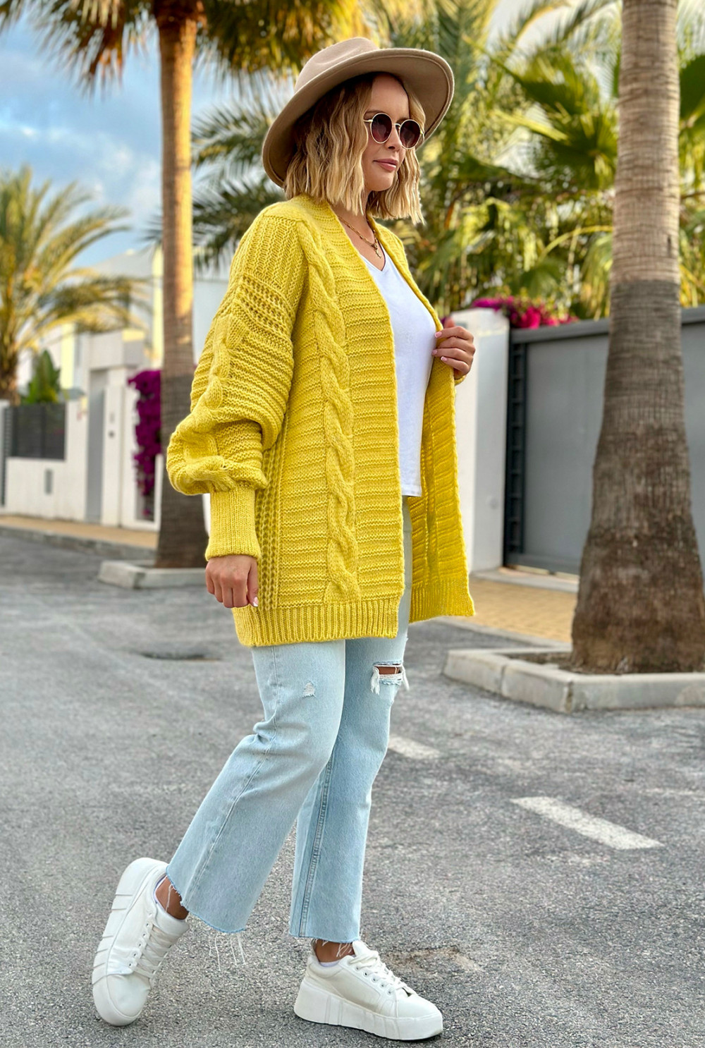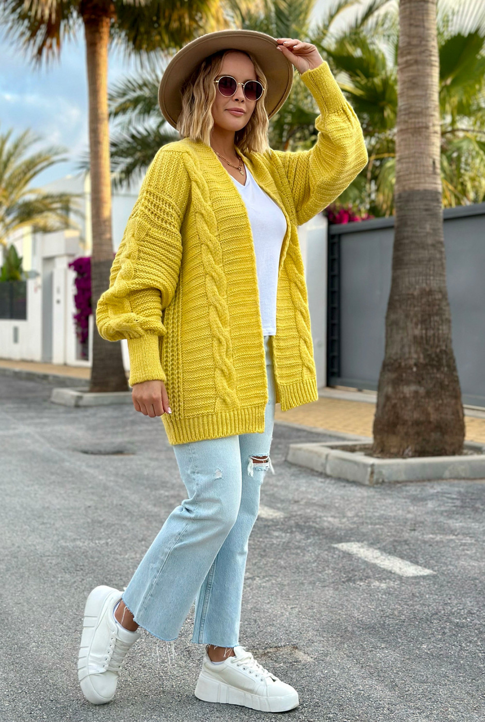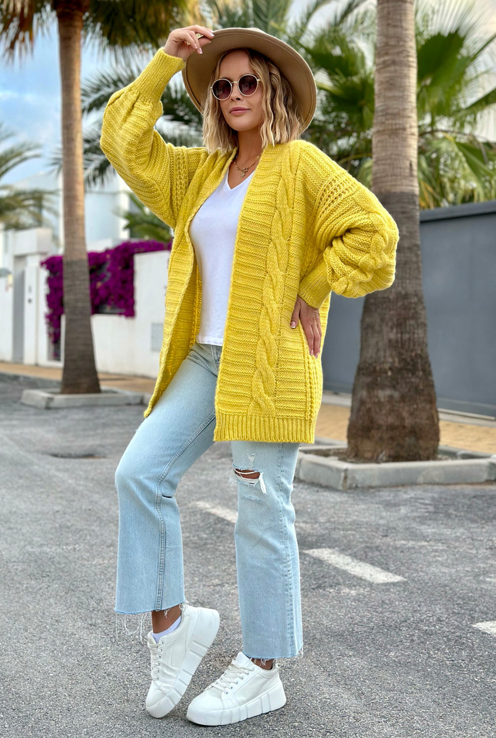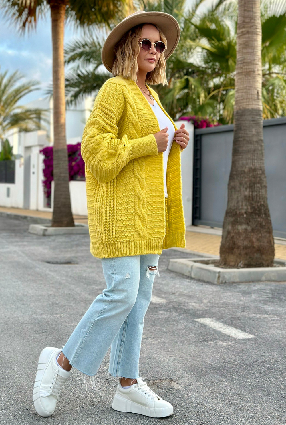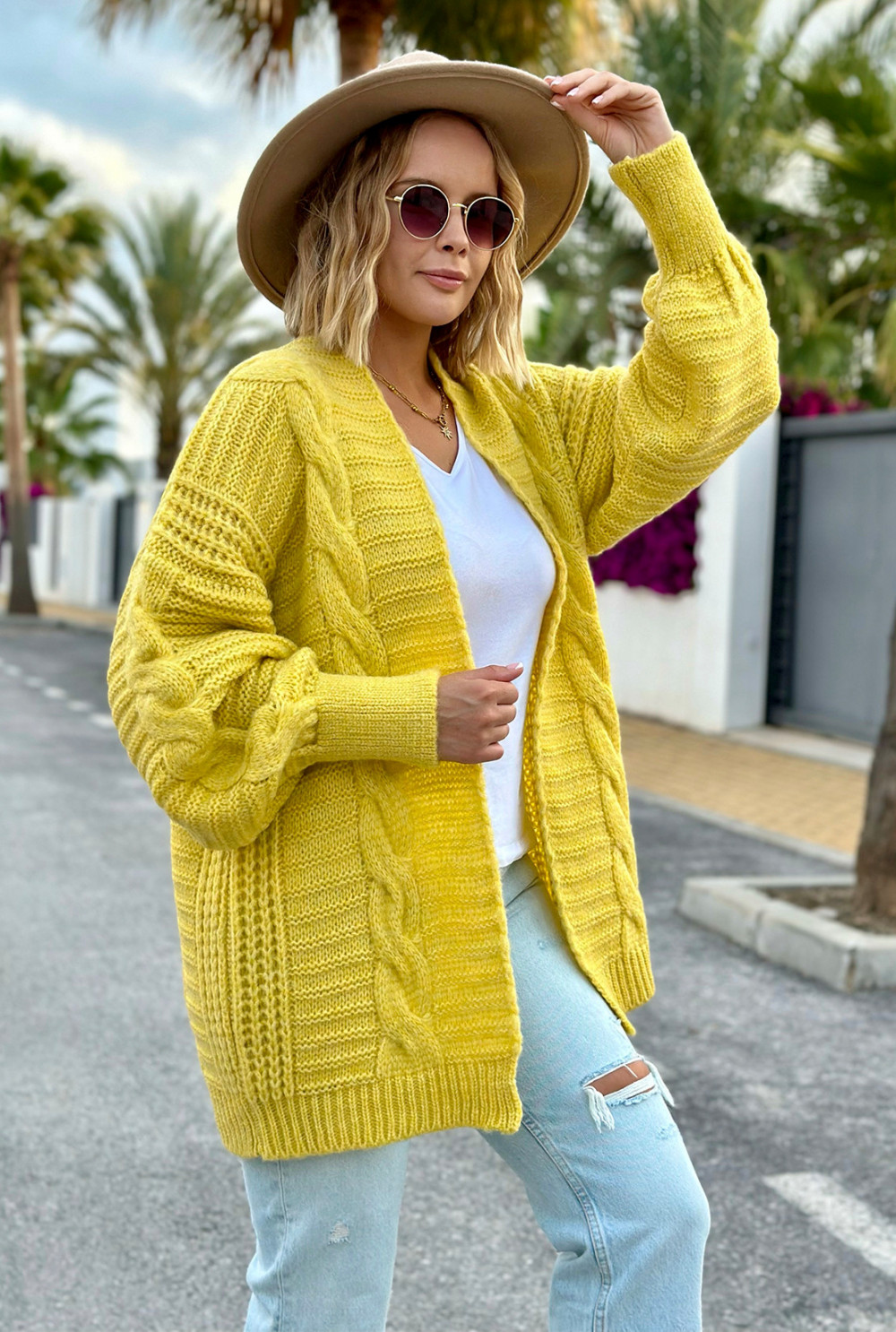 Kardigan z warkoczem Viktoria Cytryna