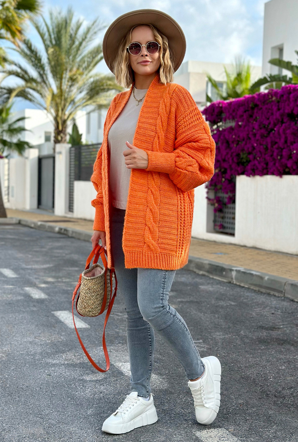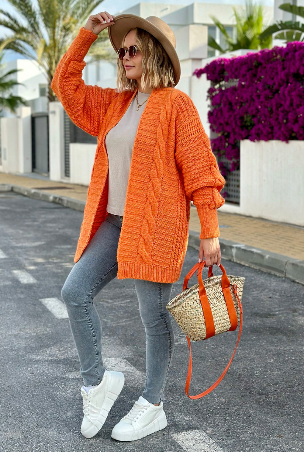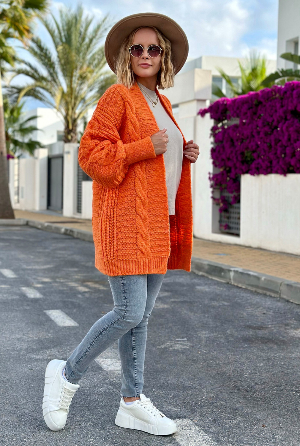 Kardigan z warkoczem Viktoria Pomarańcz