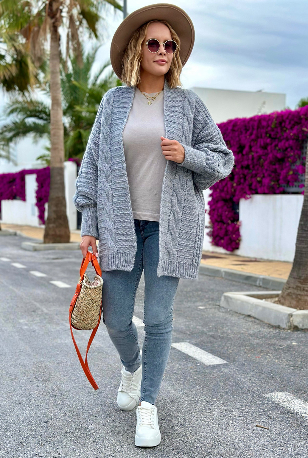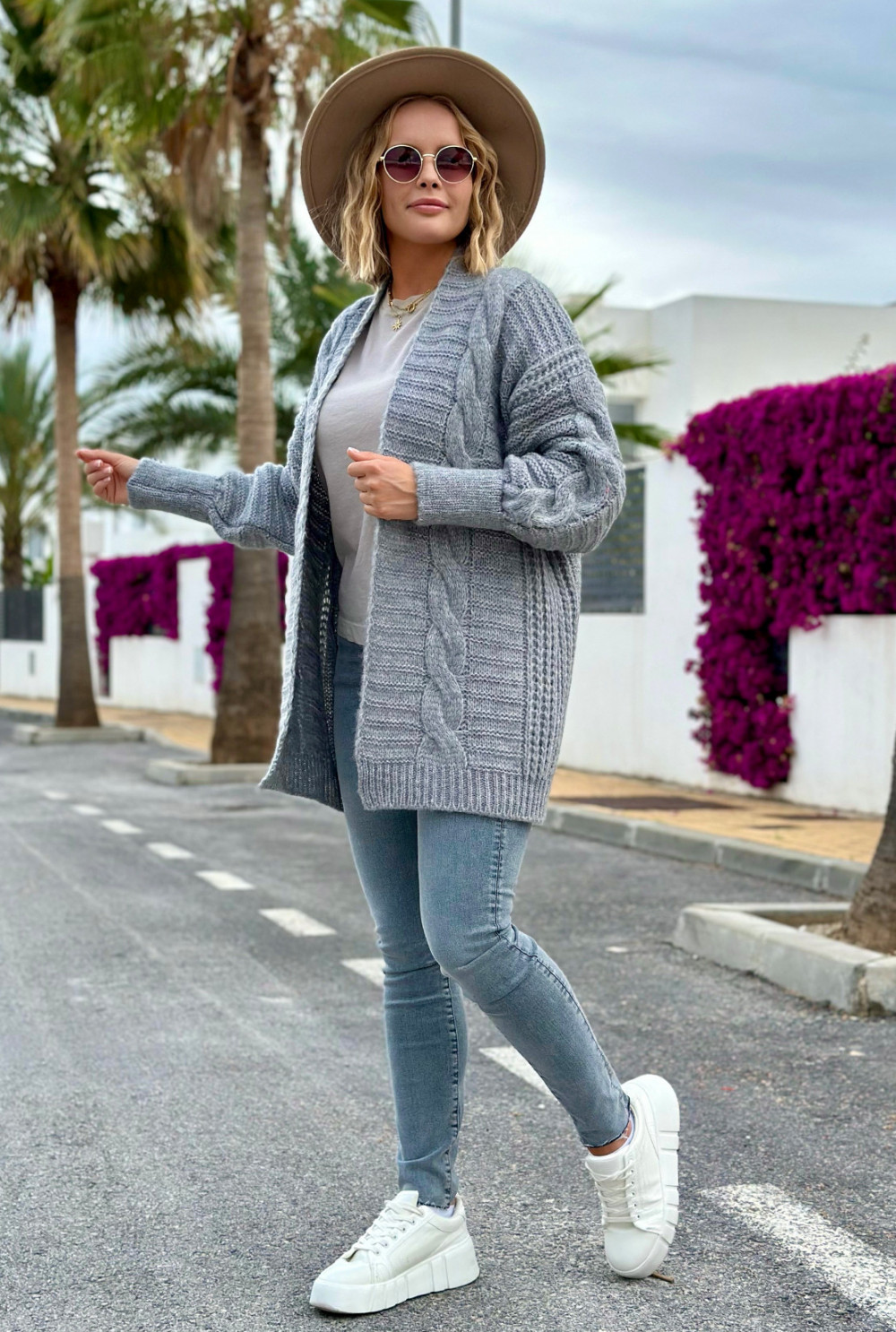 Kardigan z warkoczem Viktoria Szary